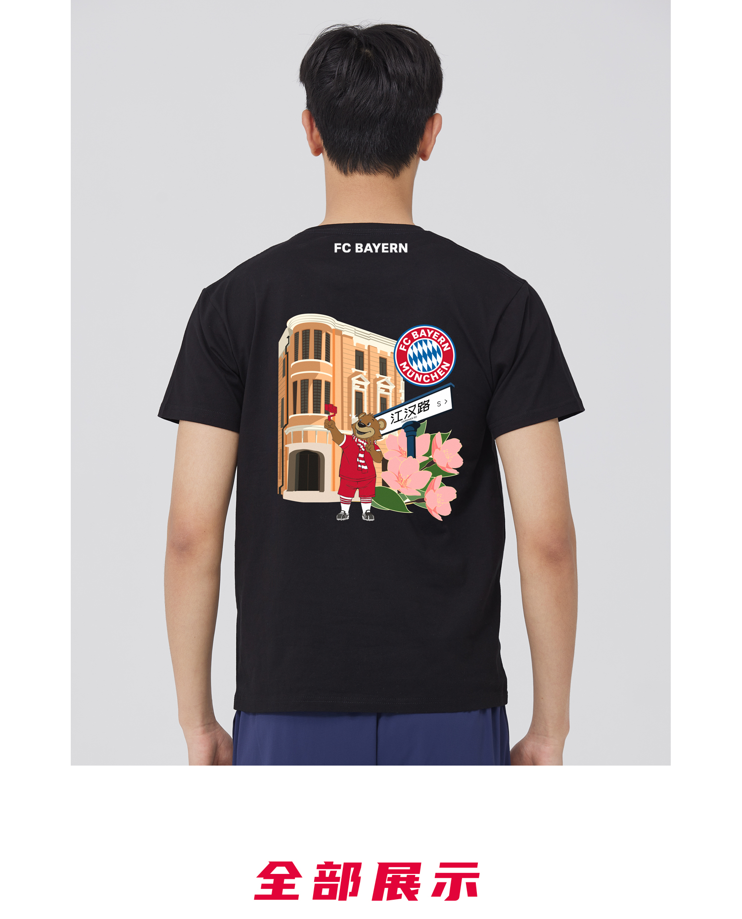 【官方正版】拜仁慕尼黑足球俱乐部|武汉城市印花黑色T恤纪念短袖