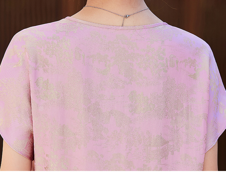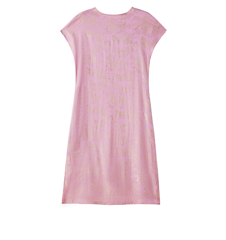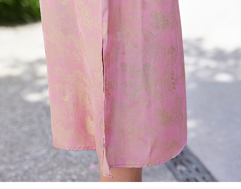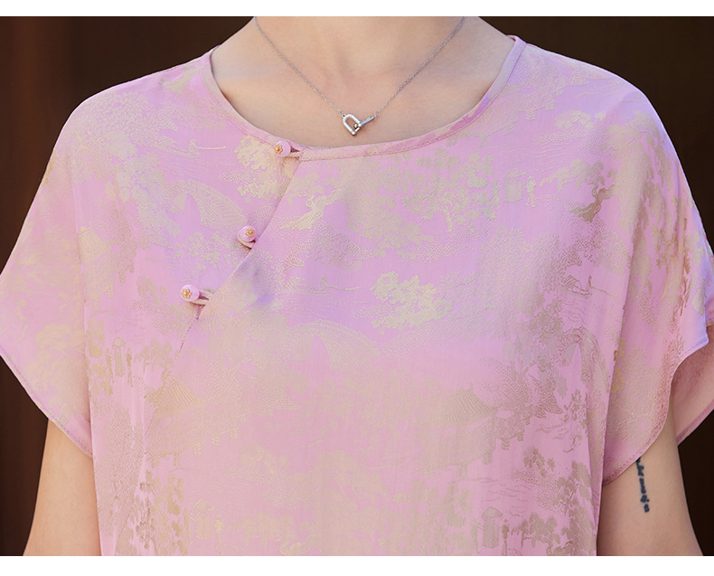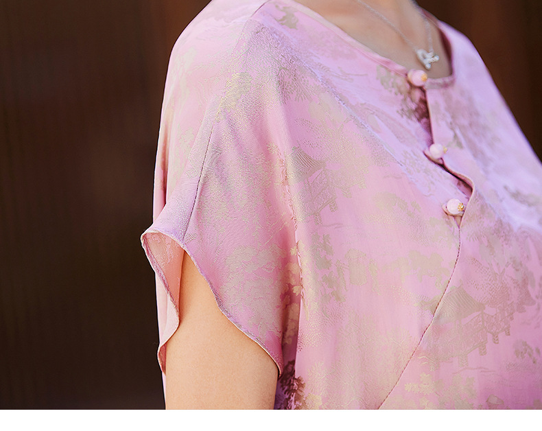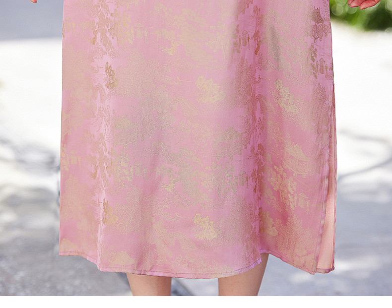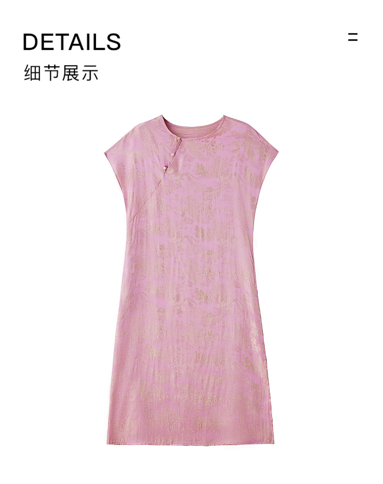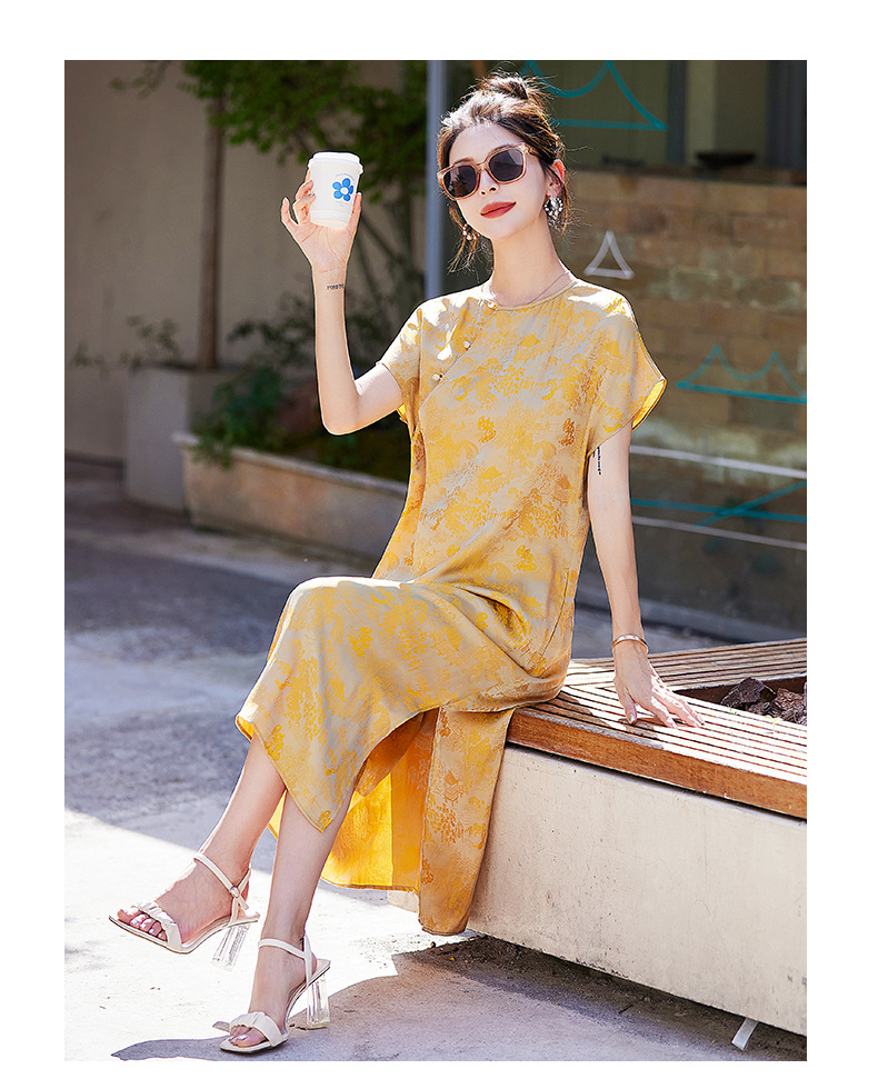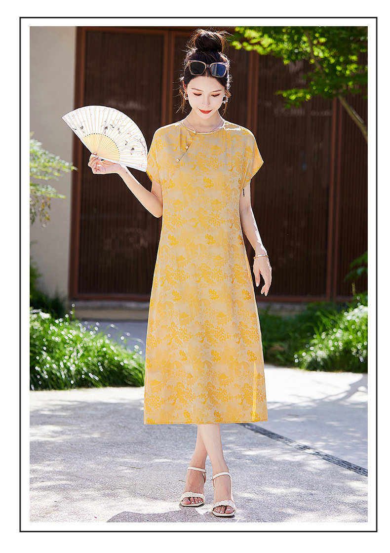 短袖新中式2024年夏季织锦缎提花圆领真口袋中长款连衣裙XYSP6016
