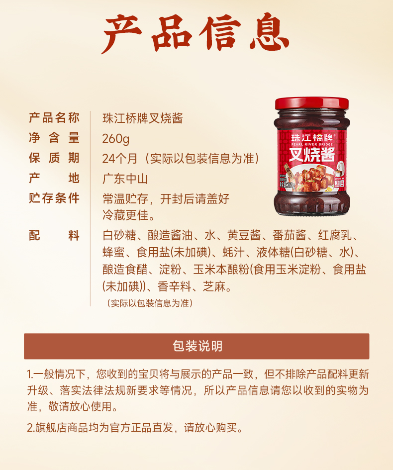 【新品热销】珠江桥牌 叉烧酱260gx2瓶