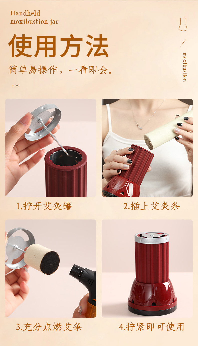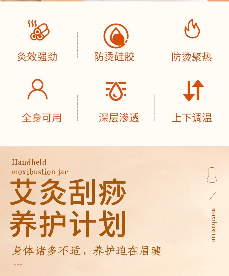 新款砭石艾灸刮痧/揉腹/头疗灸控烟随身灸手持艾灸罐