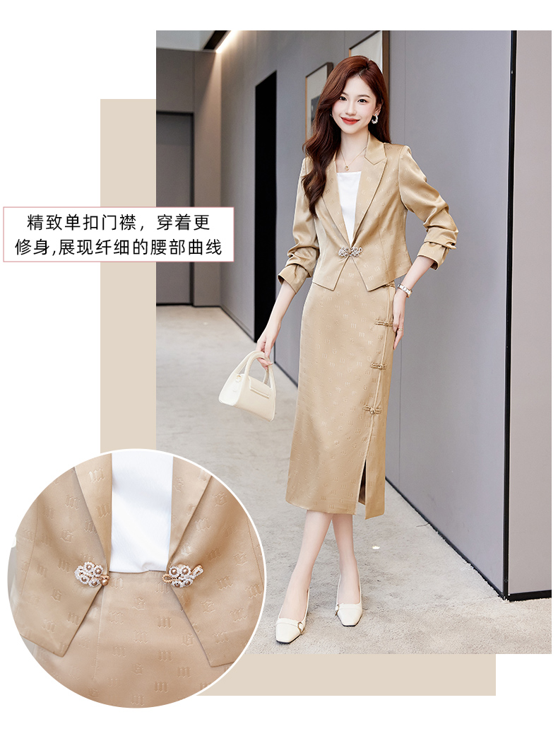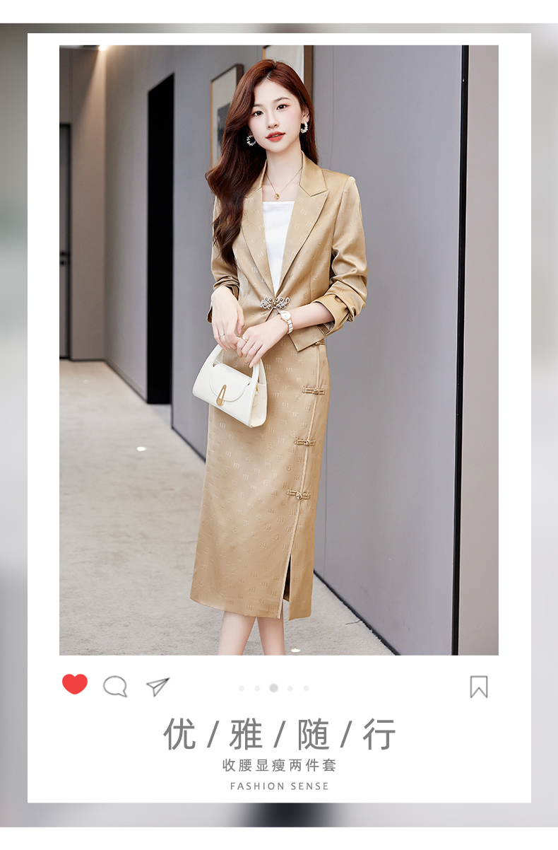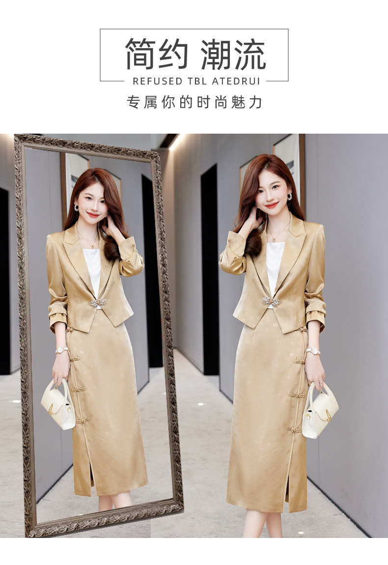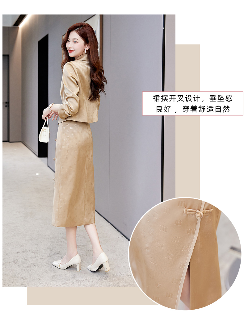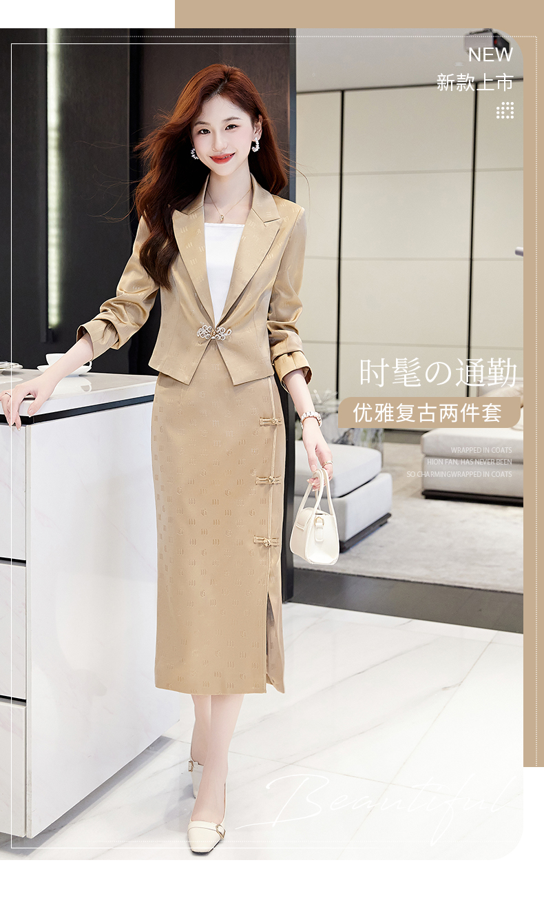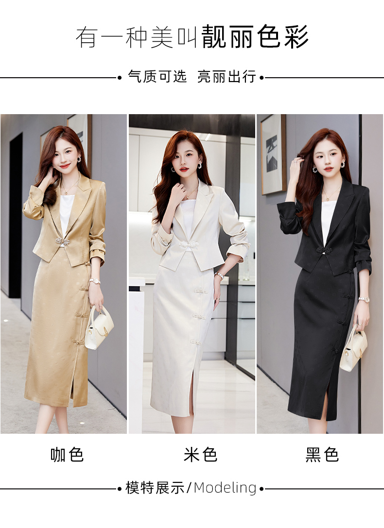 优雅修身,新中式风改良版旗袍轻熟风盐系设计感复古气质盘扣套装HR-SSQJRA688