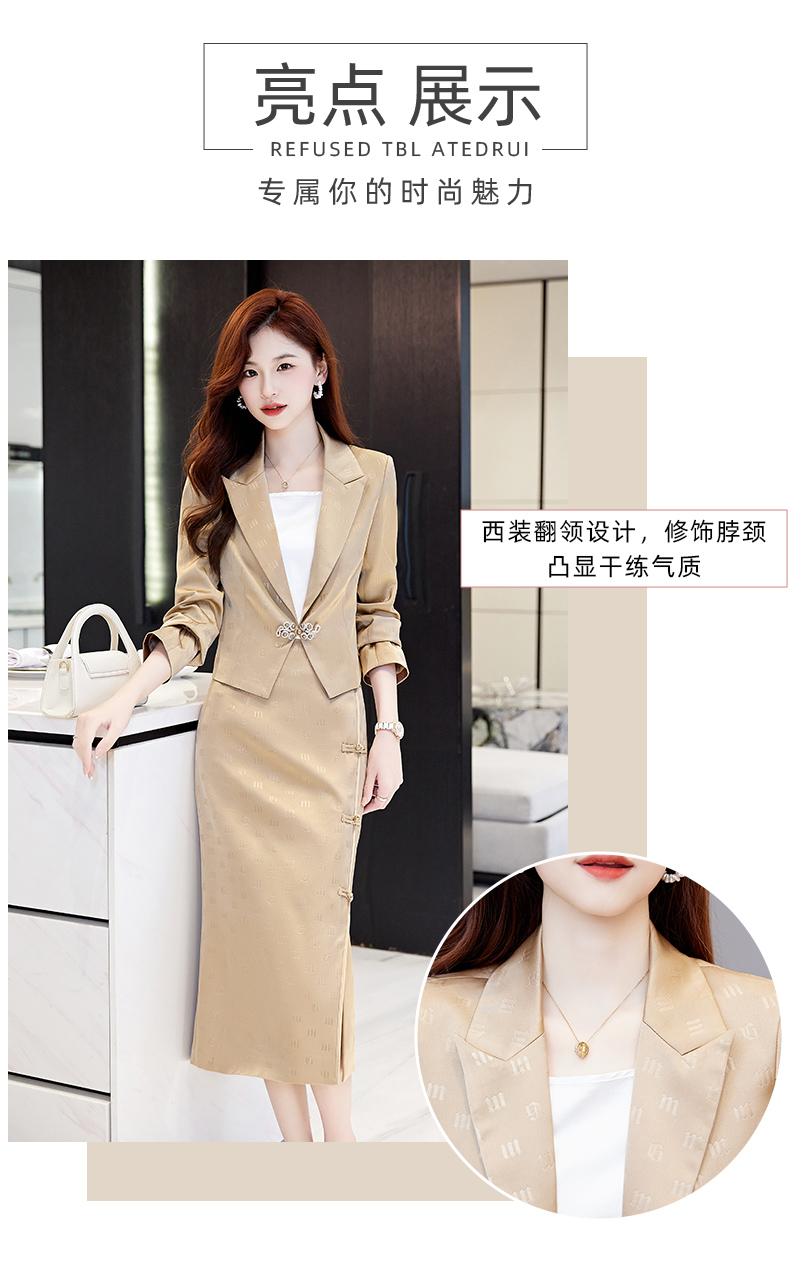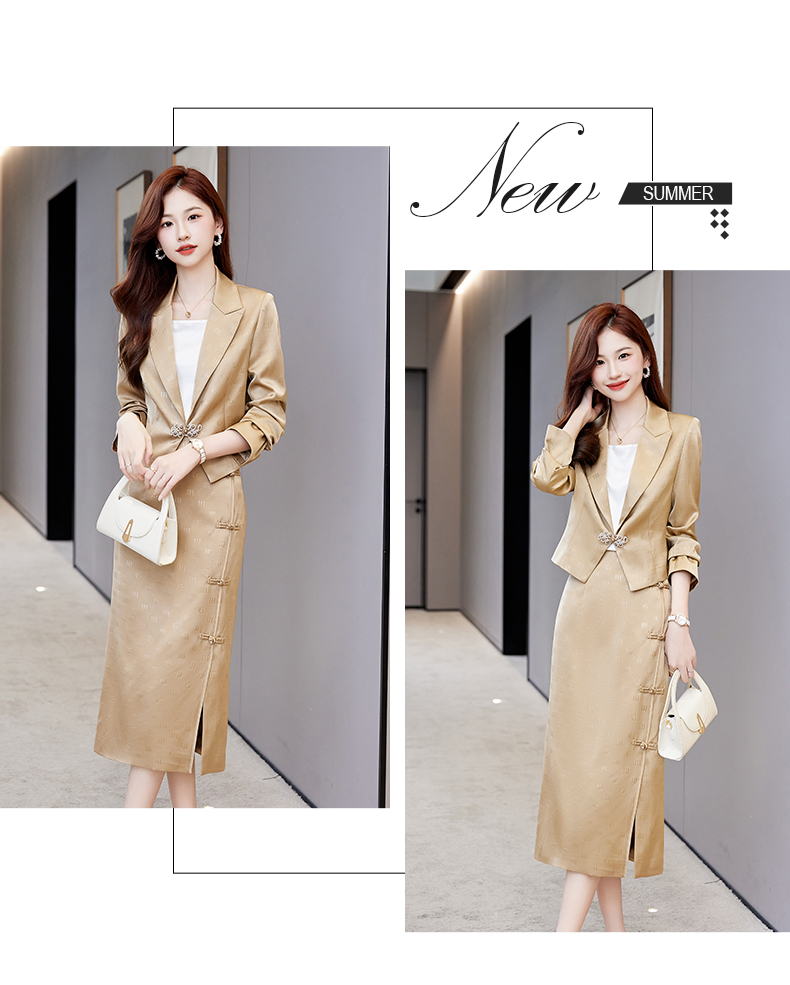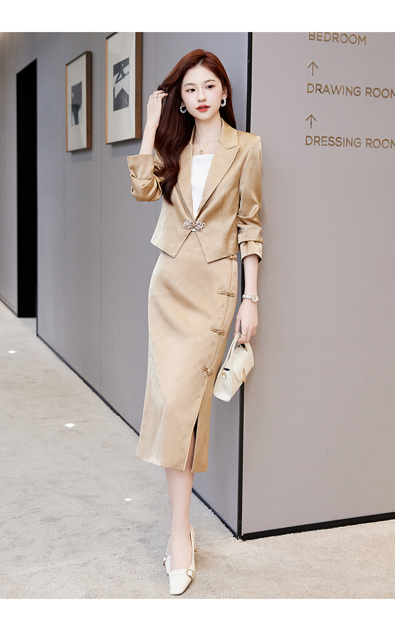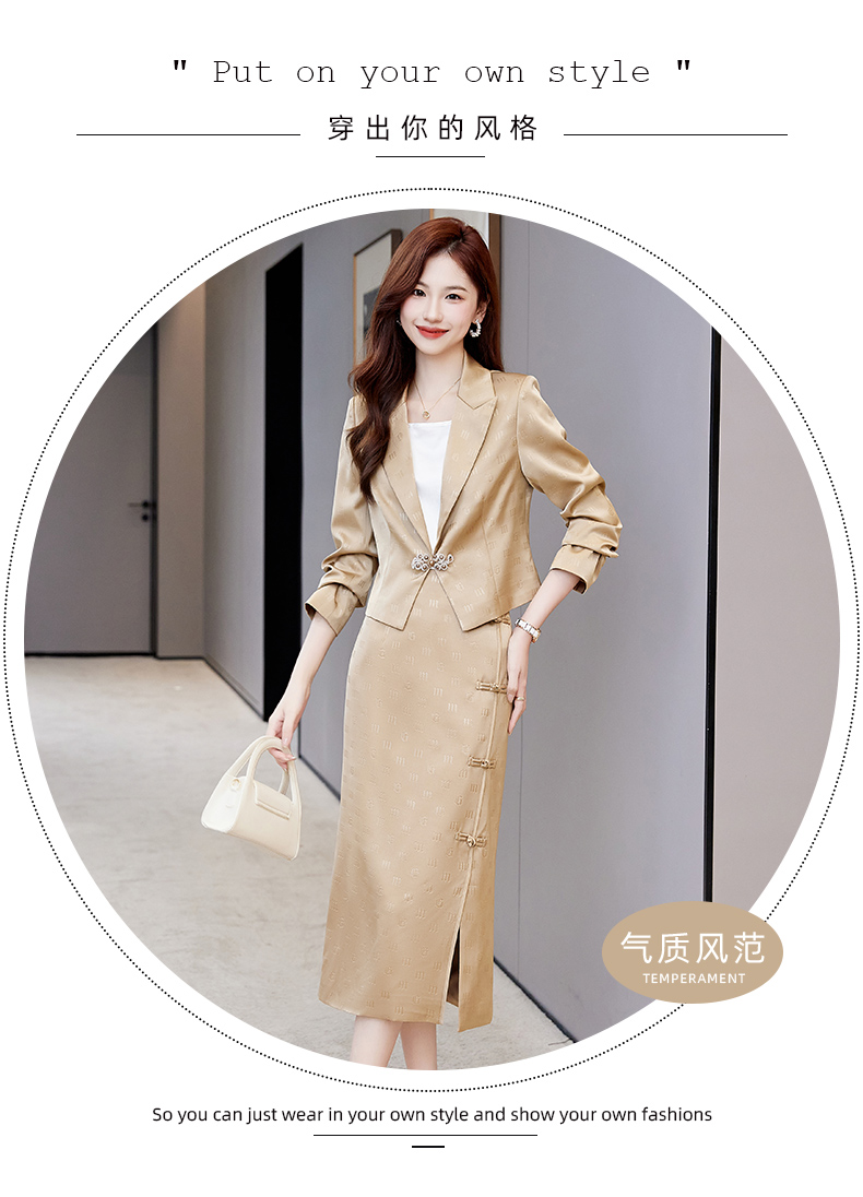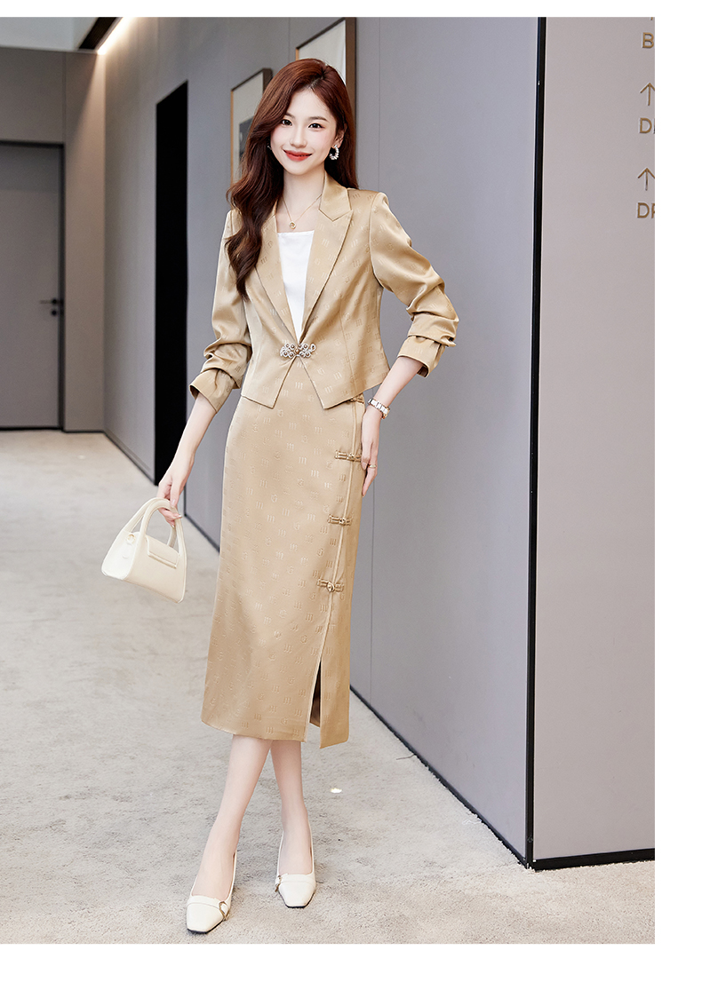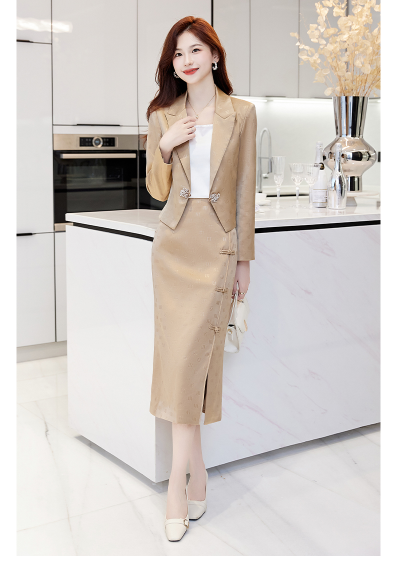 优雅修身,新中式风改良版旗袍轻熟风盐系设计感复古气质盘扣套装HR-SSQJRA688