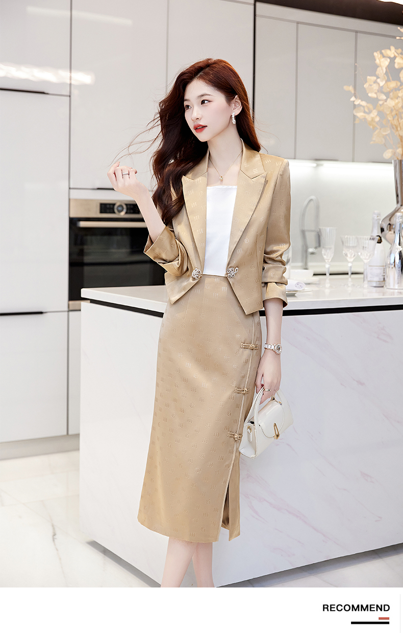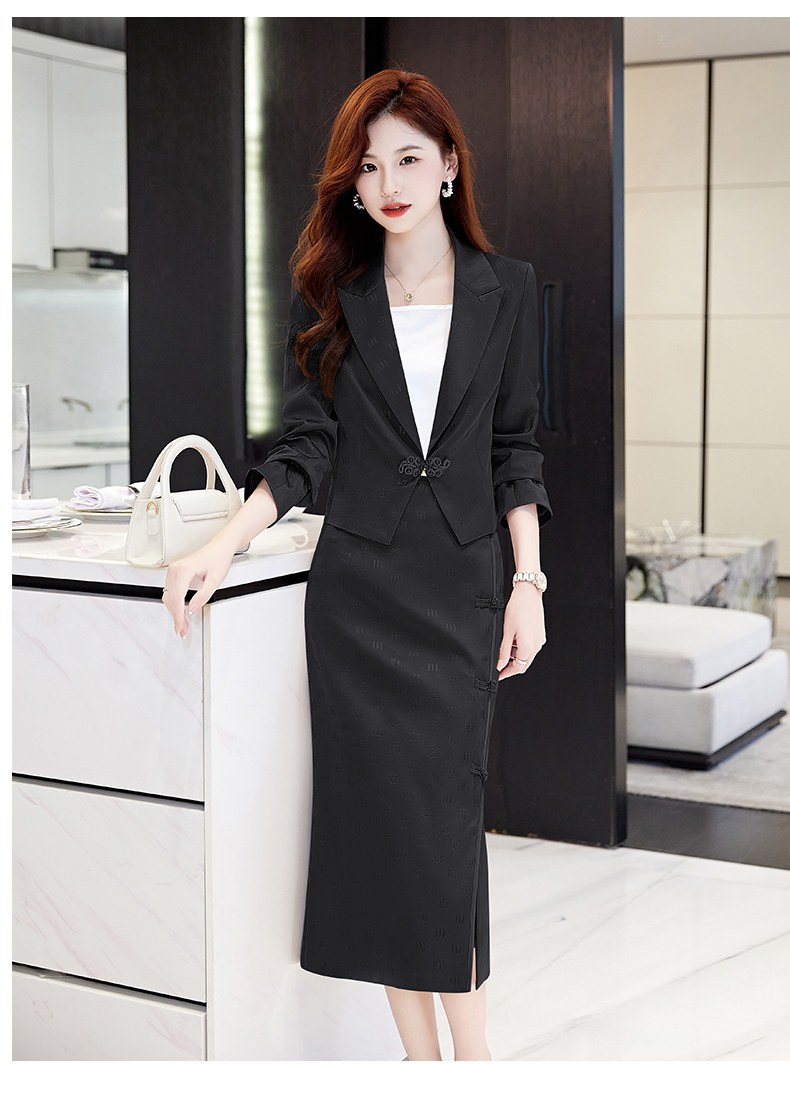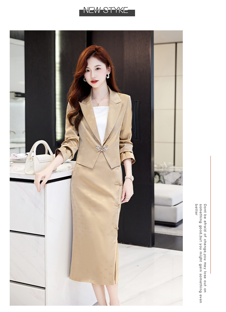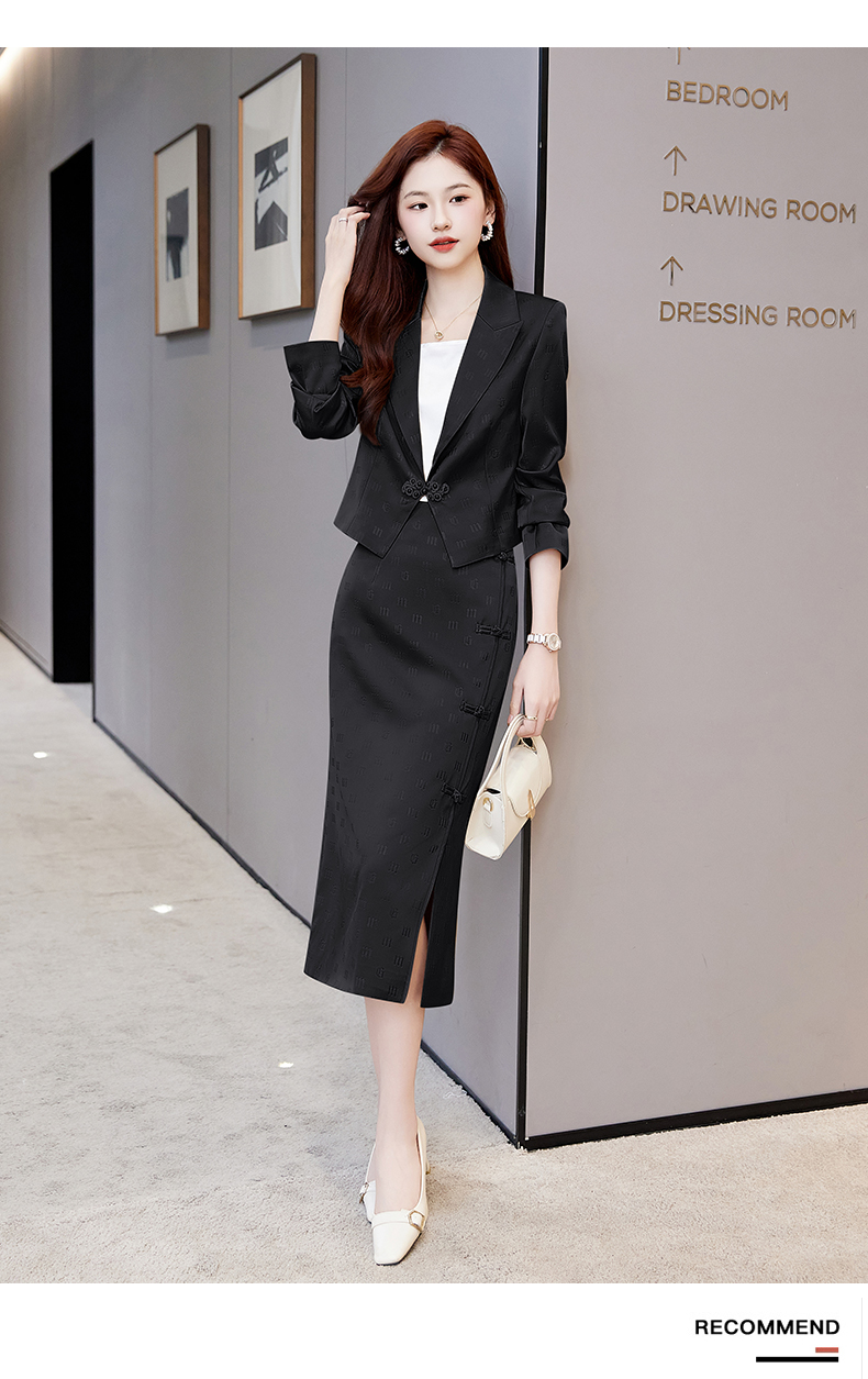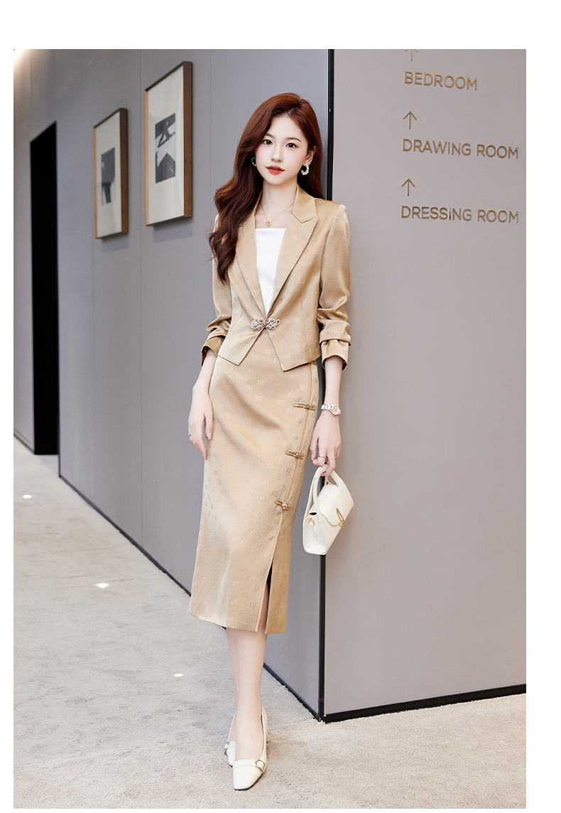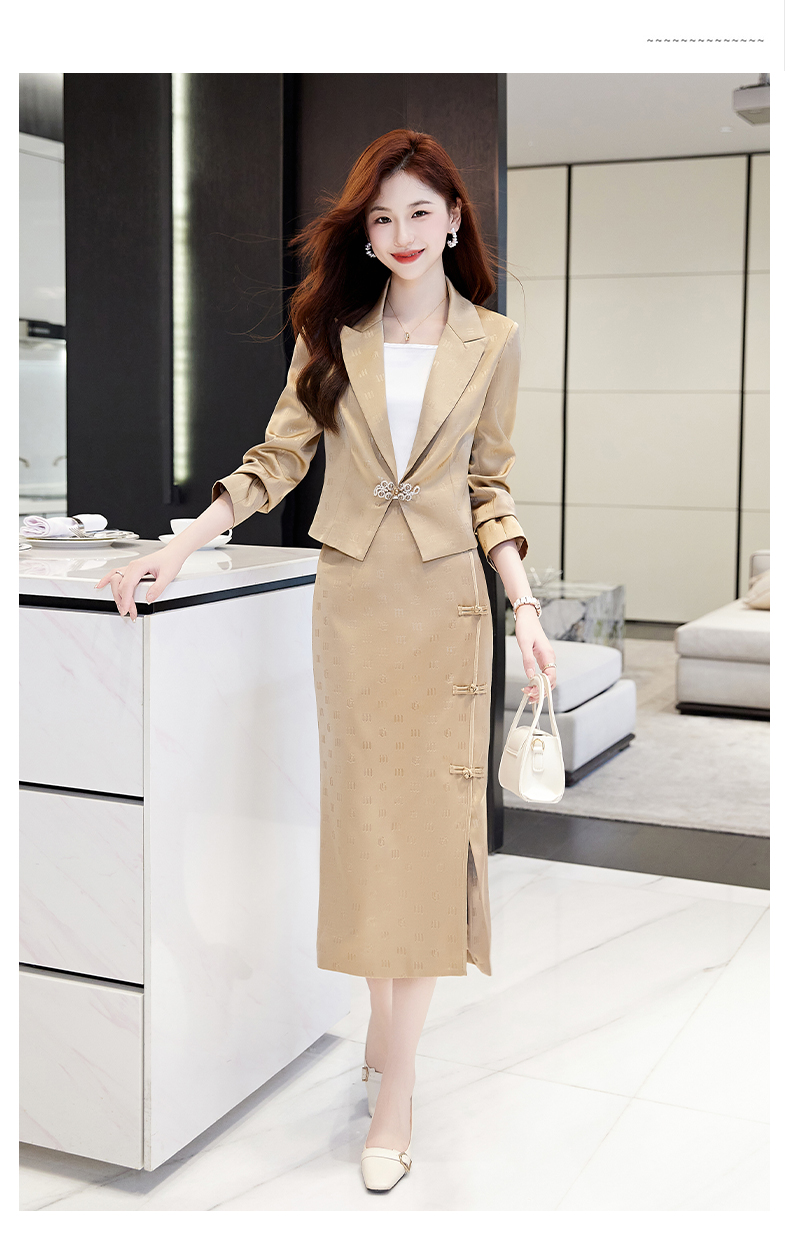 优雅修身,新中式风改良版旗袍轻熟风盐系设计感复古气质盘扣套装HR-SSQJRA688