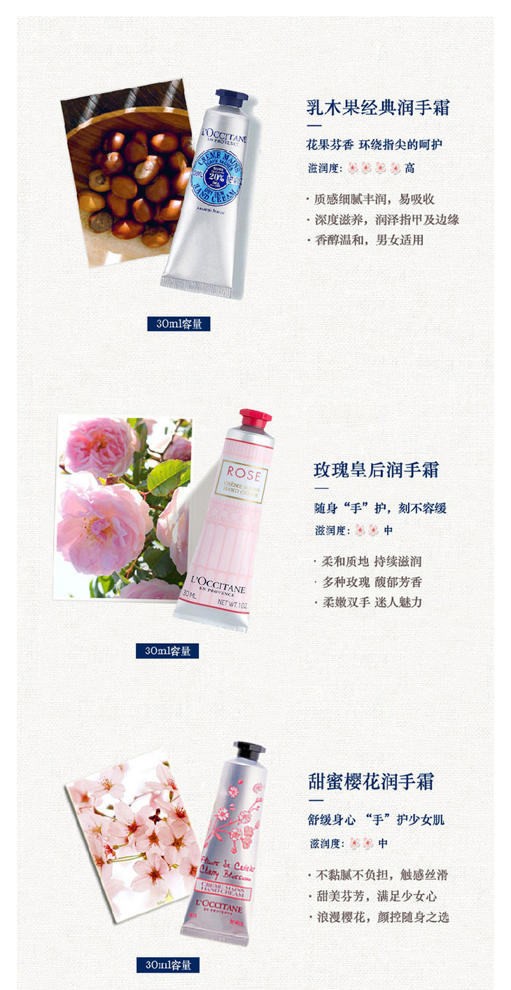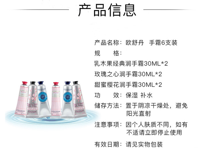 [礼盒5支装/6支装/8支装] 法国L'occitane欧舒丹保湿滋润清爽保湿润手霜30ml护手霜