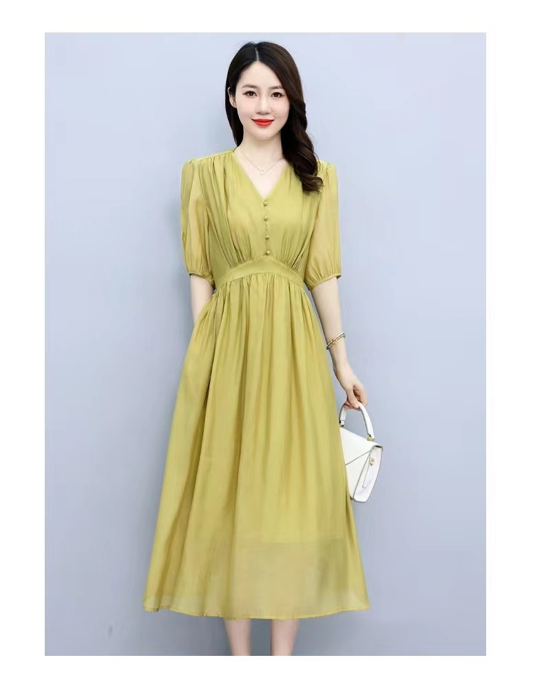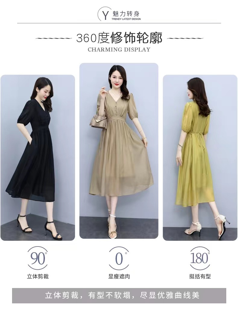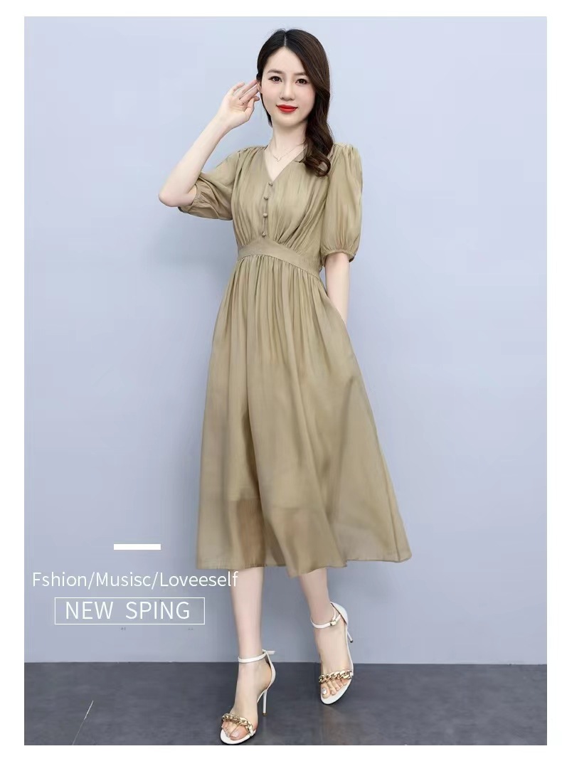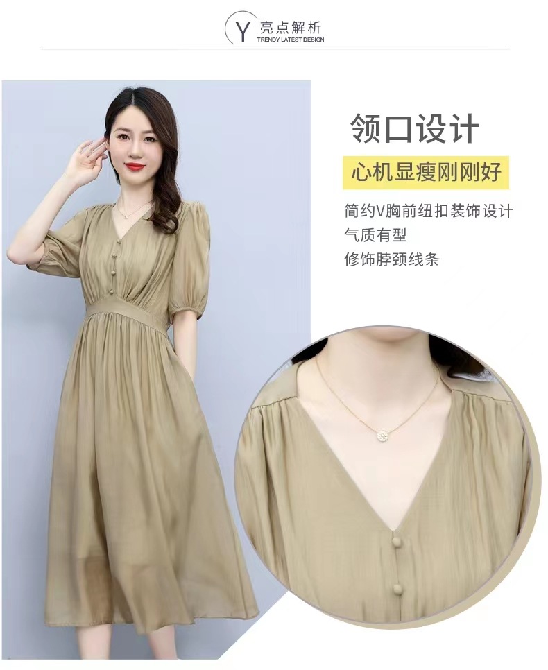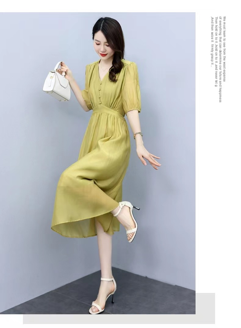 连衣裙女2022新款夏季感法式高腰显瘦泡泡袖惊艳长裙 YYM1236