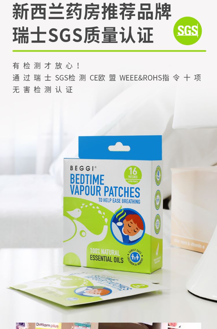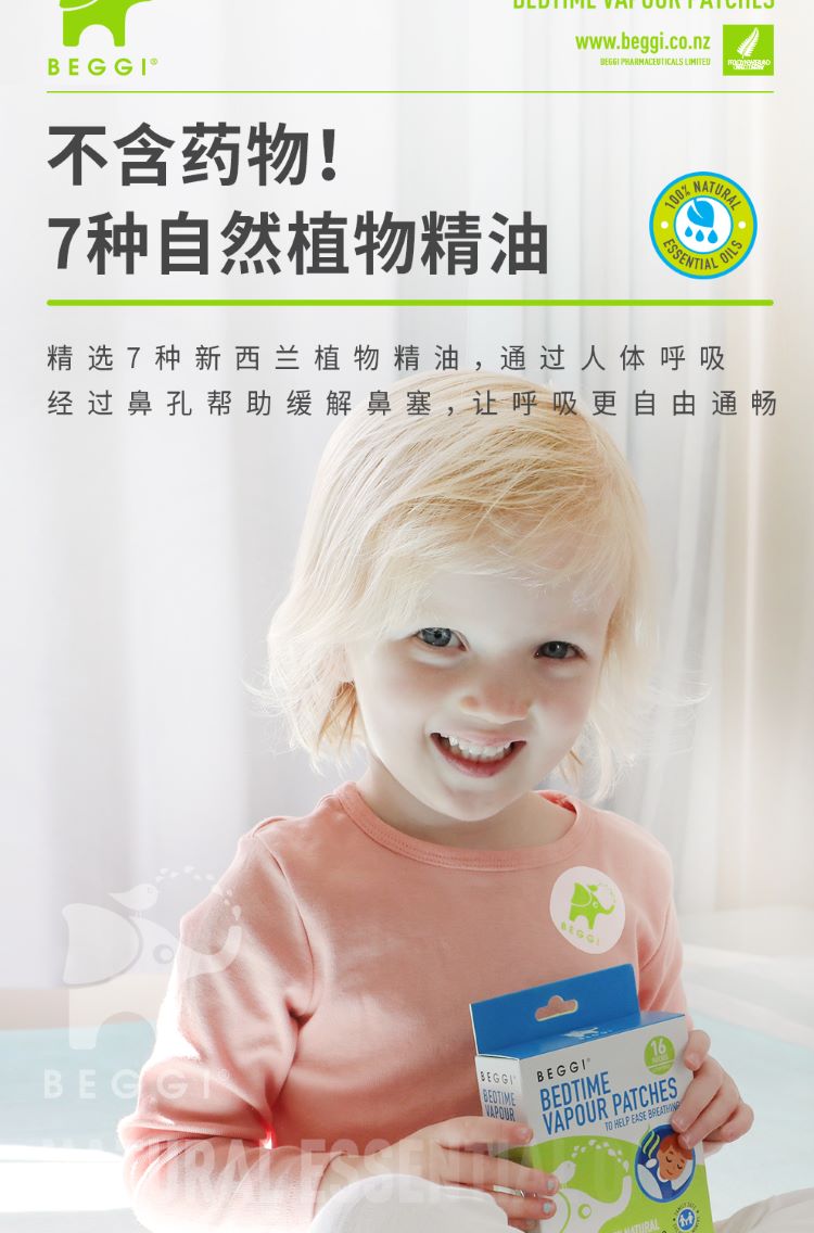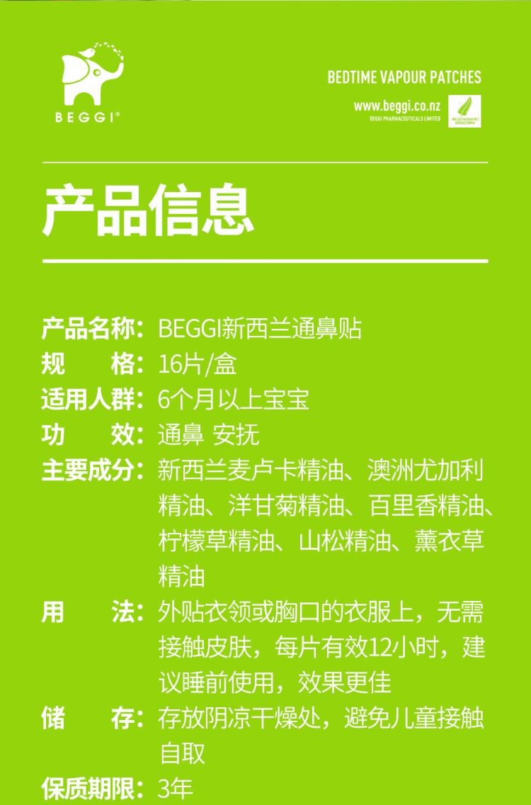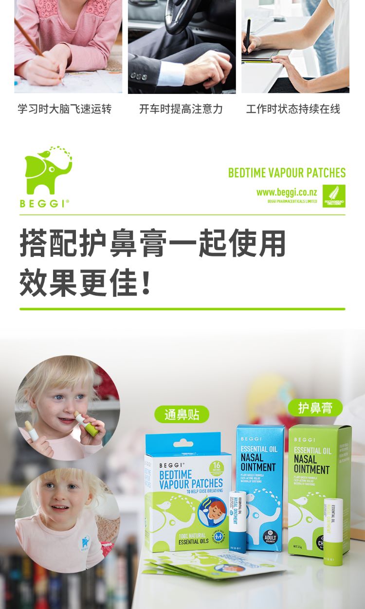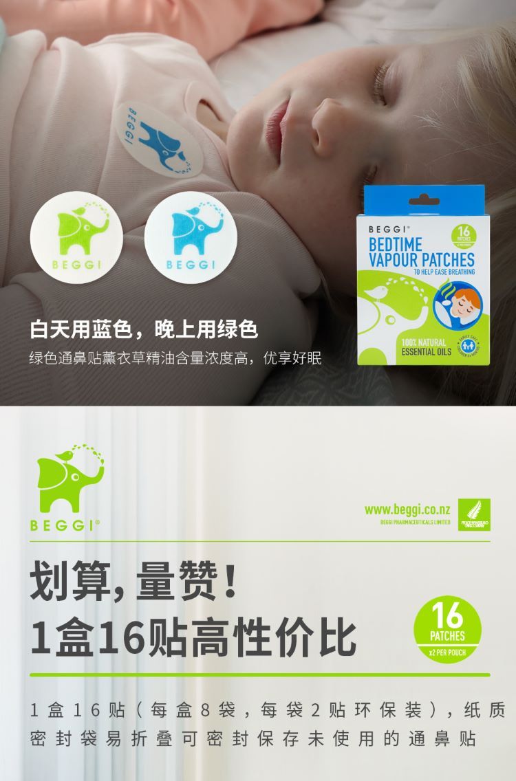 BEGGI新西兰通鼻贴 16片/盒 植物精油成分 舒缓鼻塞 呼吸顺畅 儿童成人通用