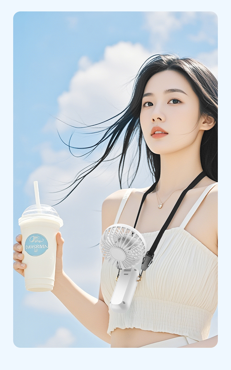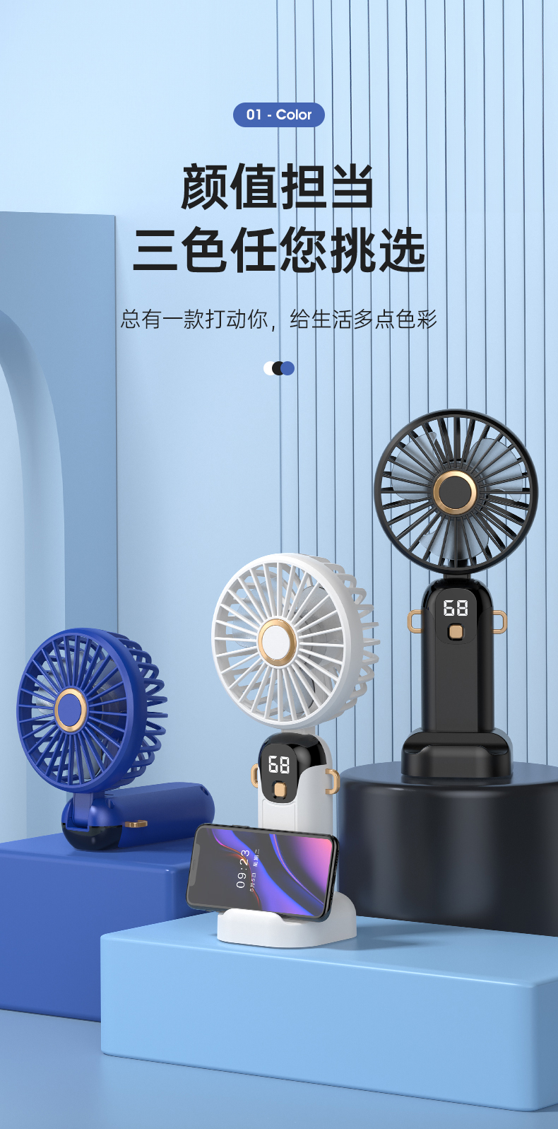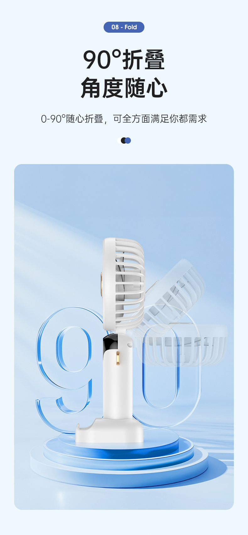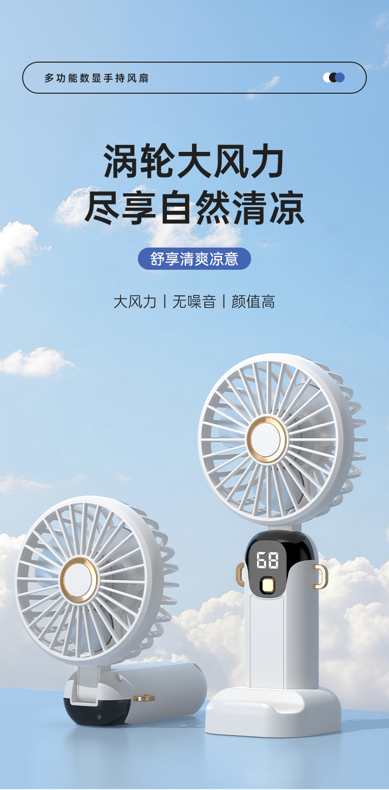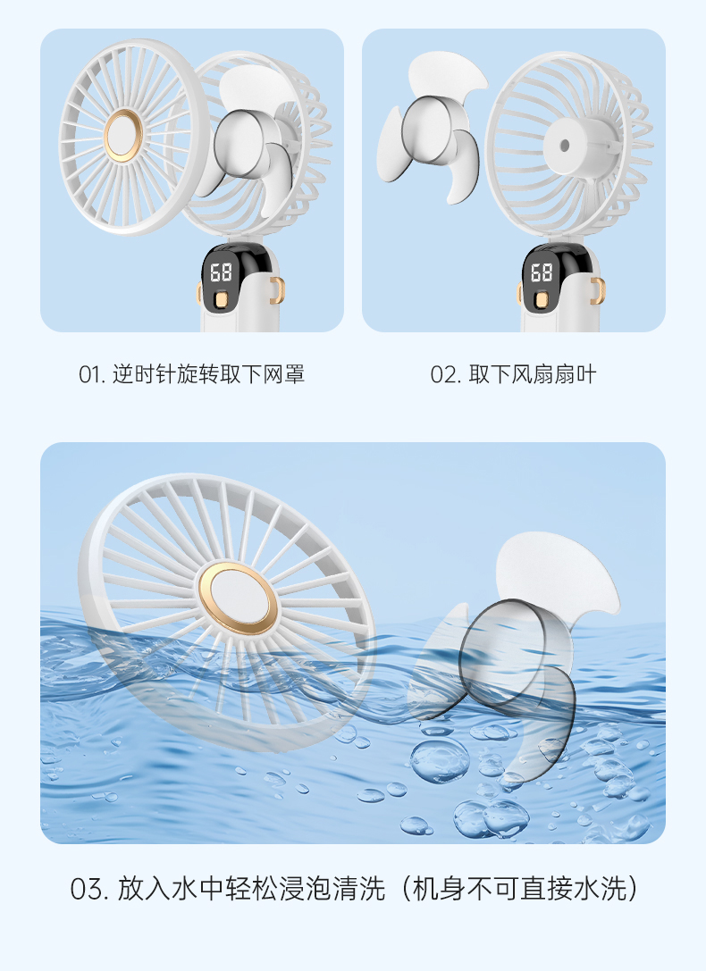 新款数显手持风扇usb充电式折叠风扇带支架可放手机便携式风扇(该款不做售后)