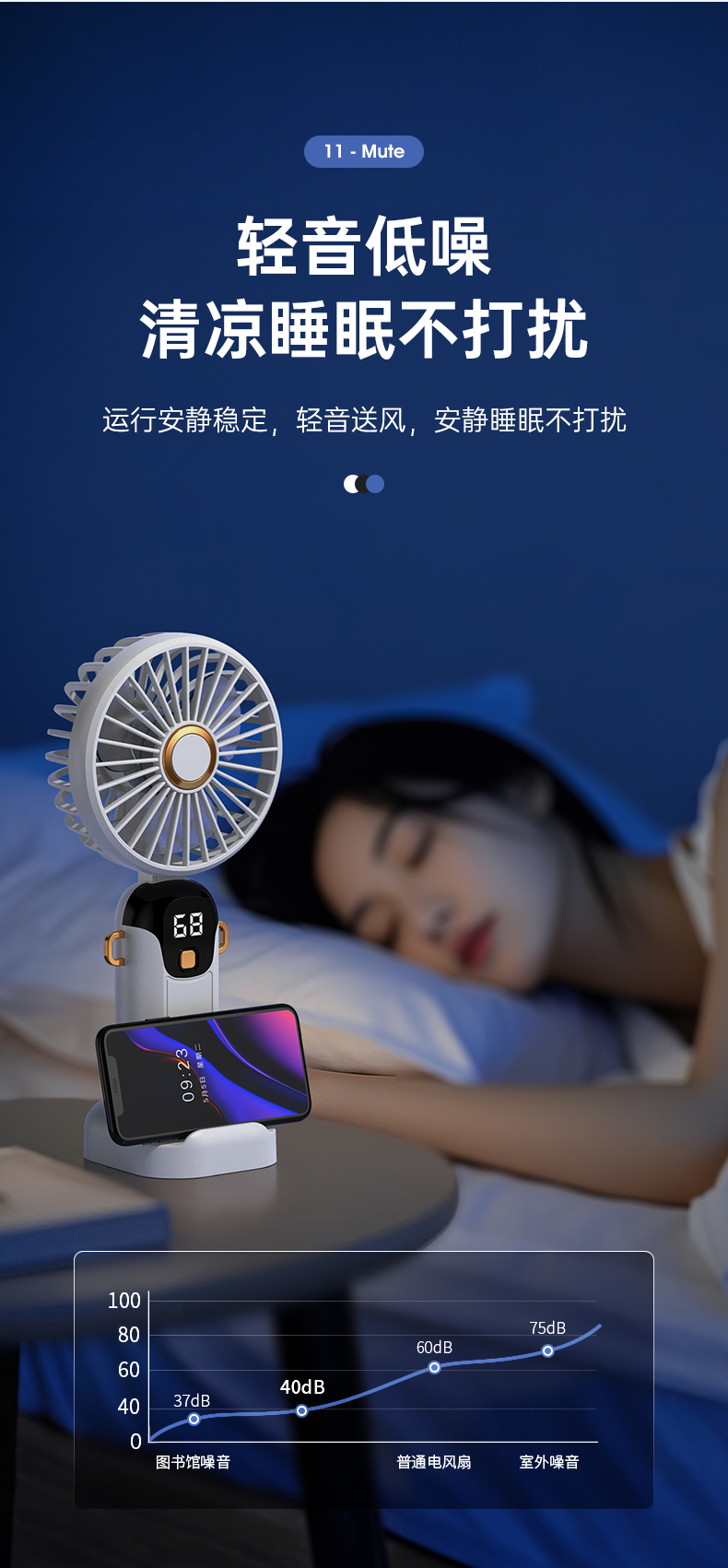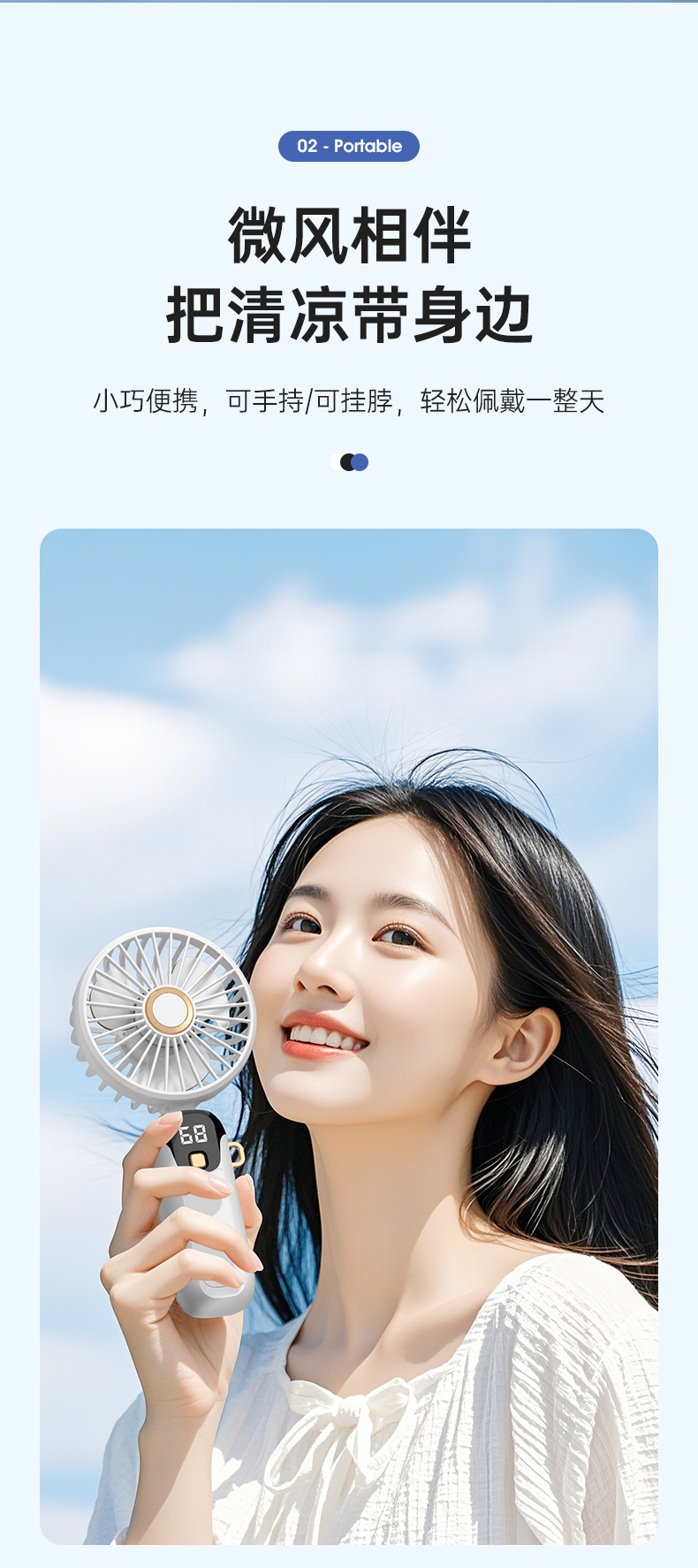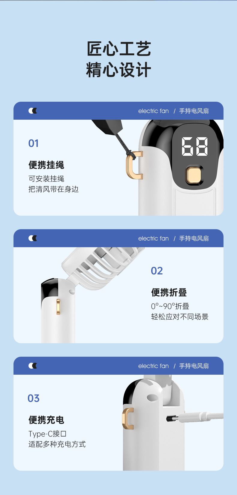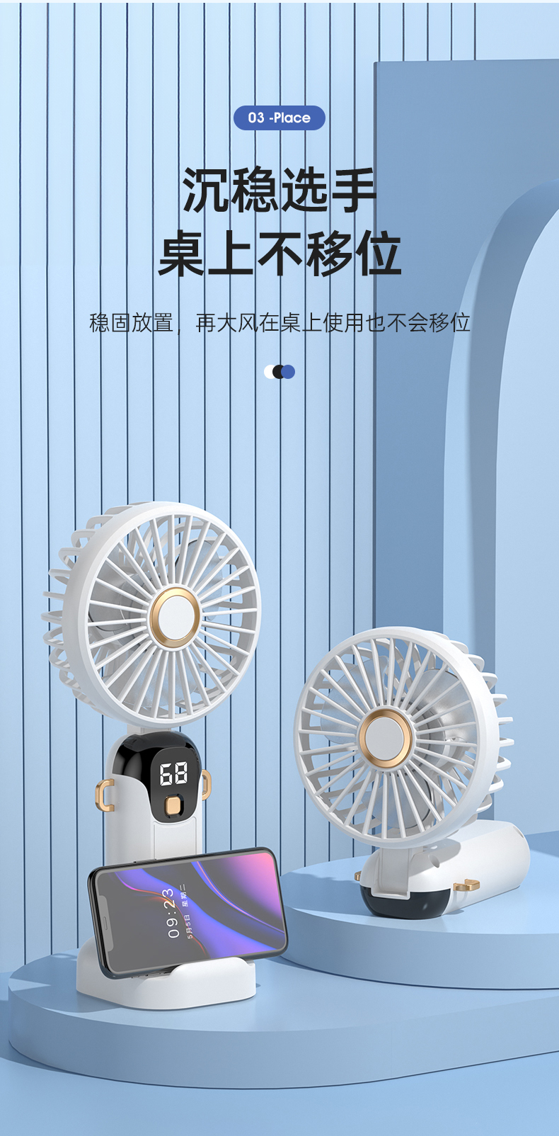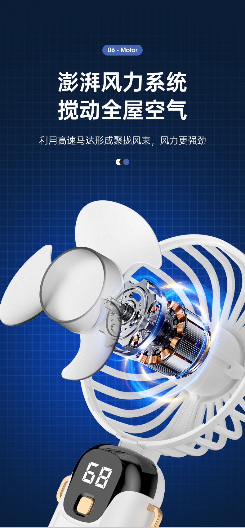 新款数显手持风扇usb充电式折叠风扇带支架可放手机便携式风扇(该款不做售后)