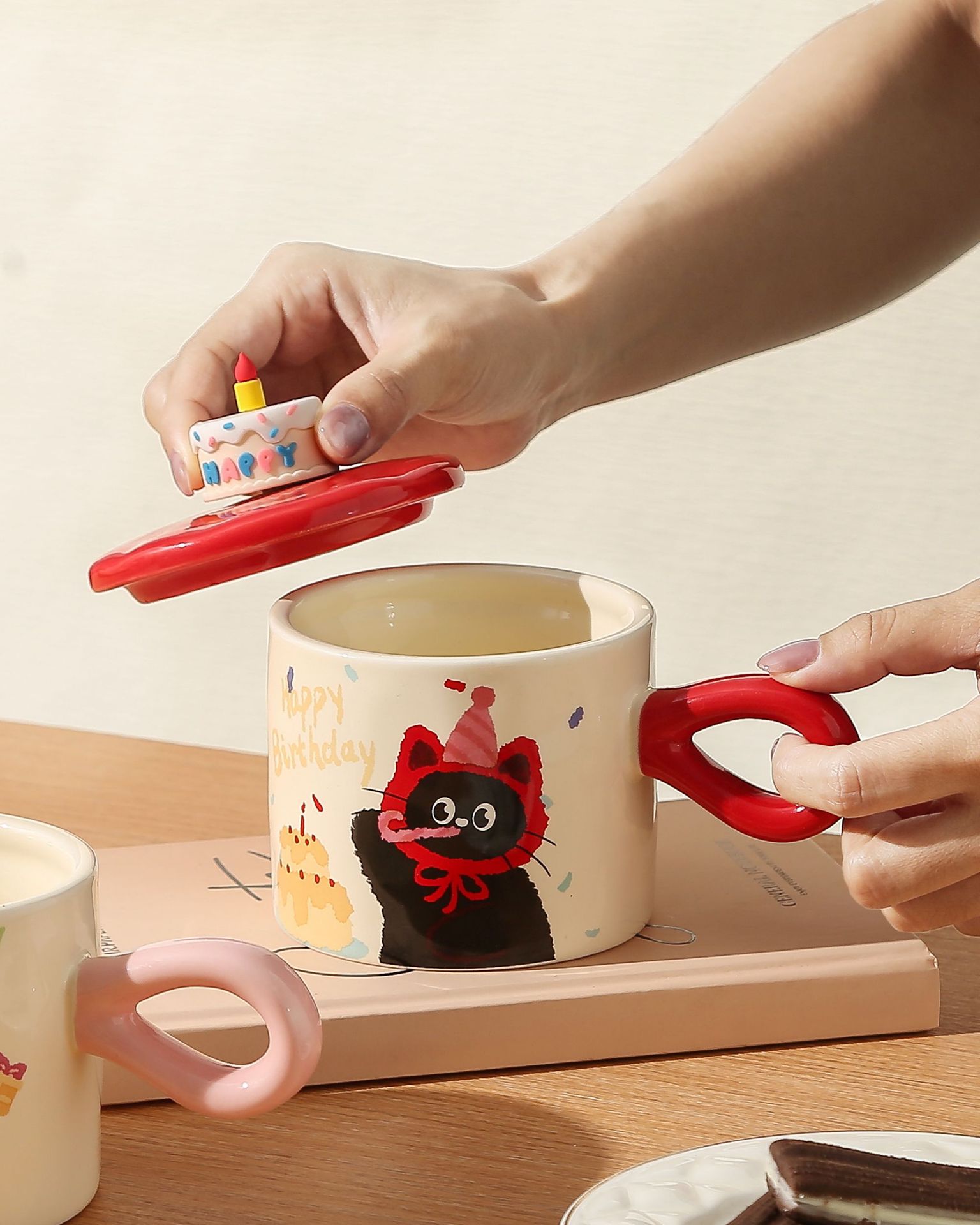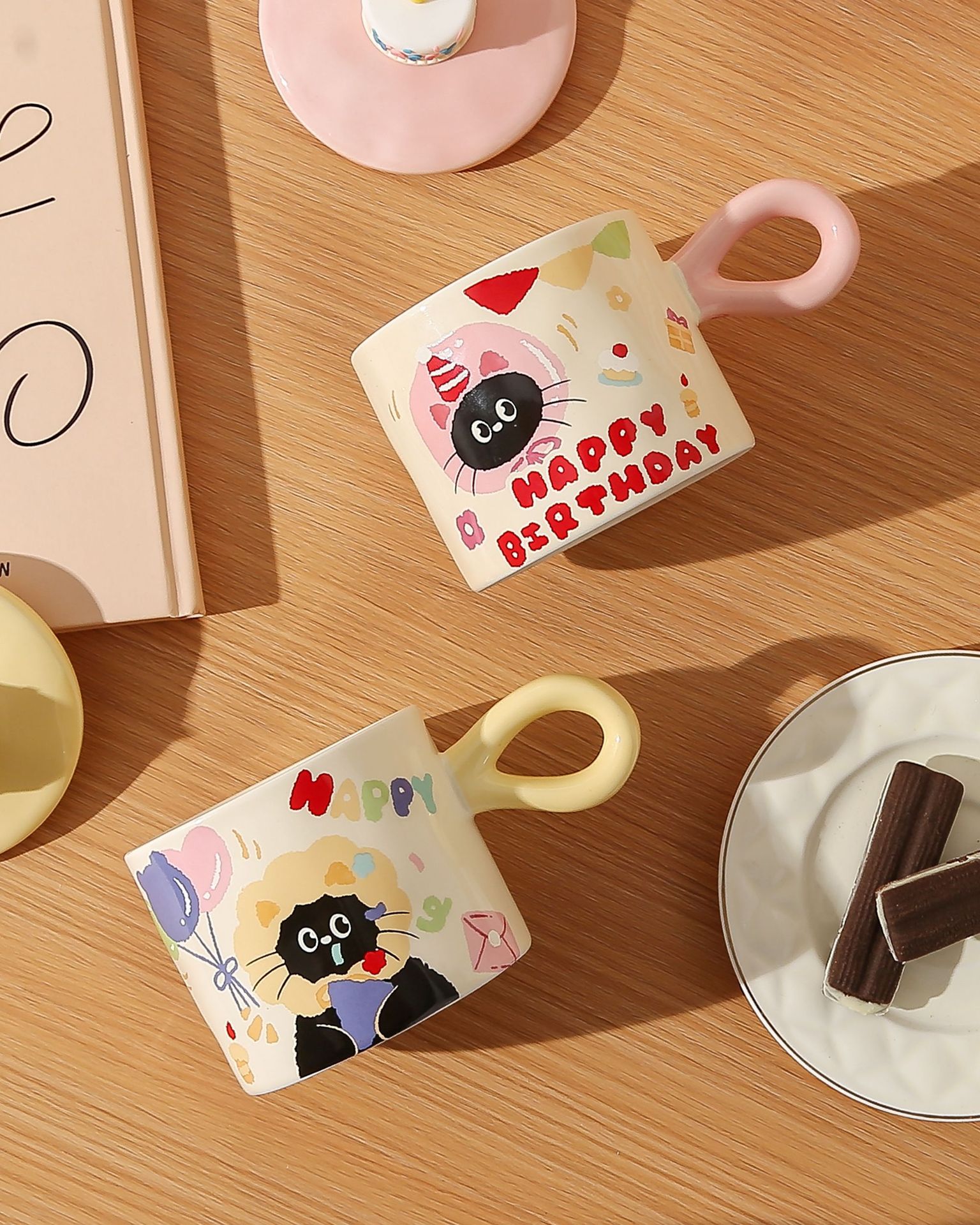 【耐高温!高颜值】生日礼物蛋糕杯子可爱蛋糕马克杯生日猫咪陶瓷水杯咖啡杯伴手礼物。xb