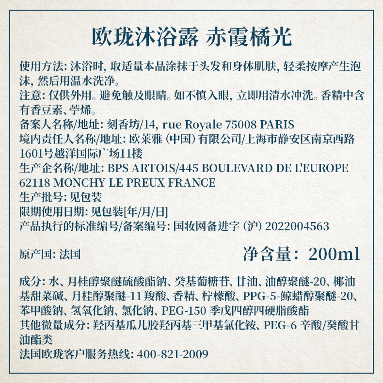 【OTL专场】欧珑沐浴露 无极乌龙 200ml/赤霞橘光 200ml
