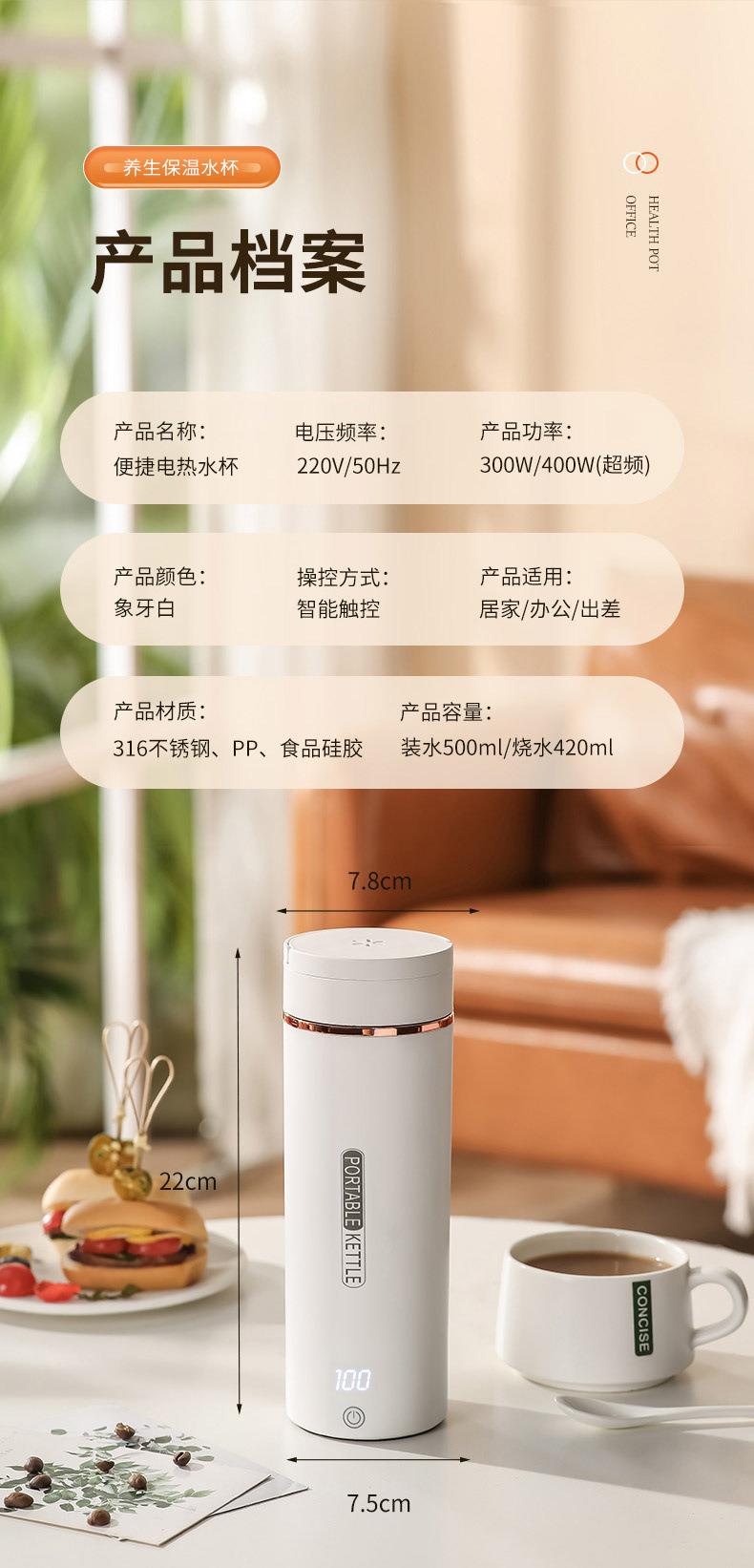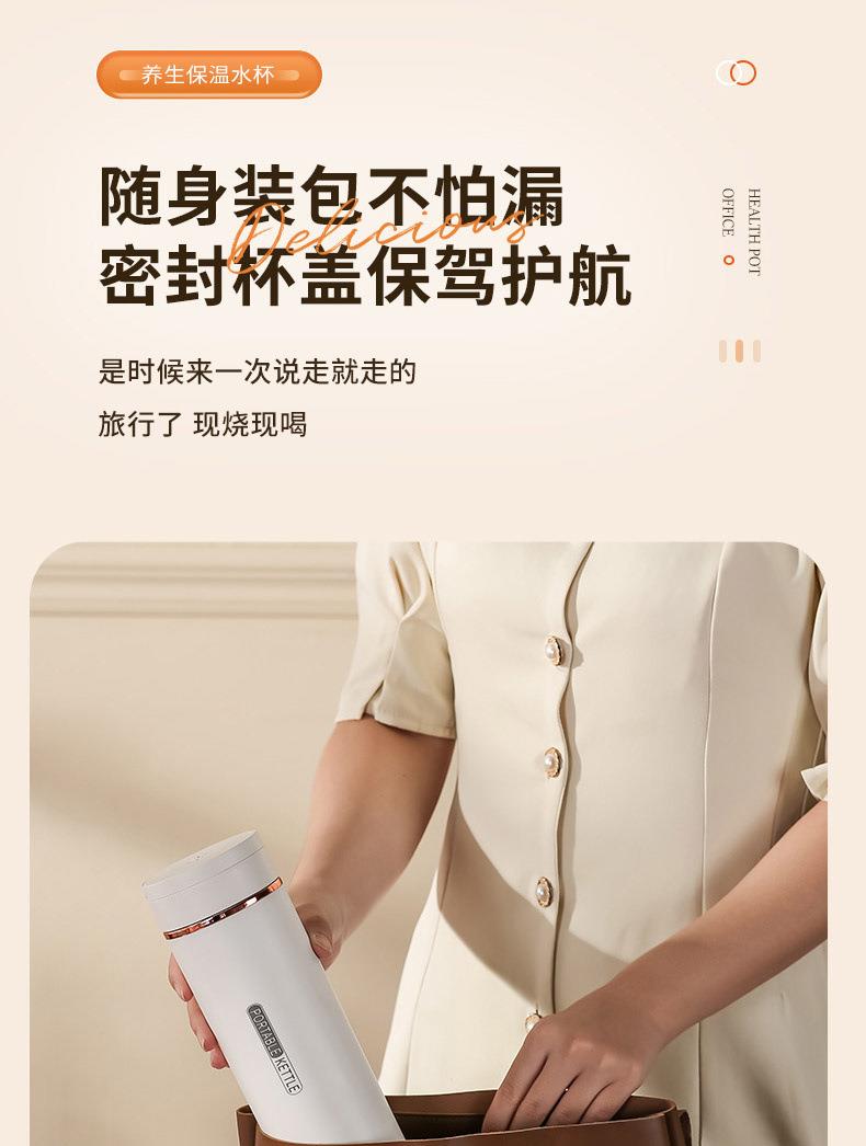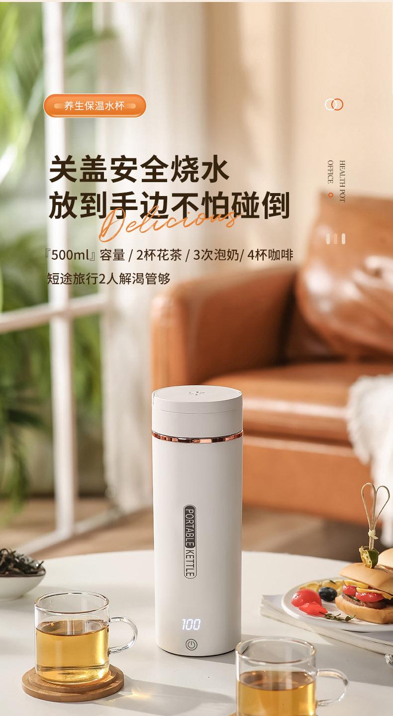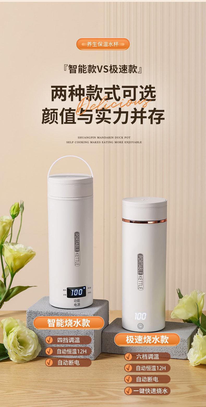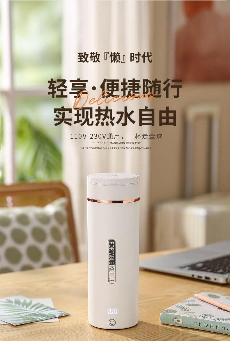 全球通用便携式烧水壶旅行加热烧水杯小型家用热水壶保温杯电热杯