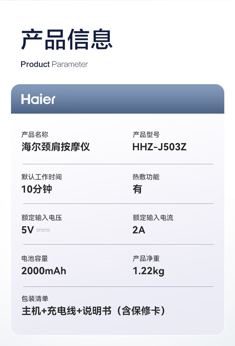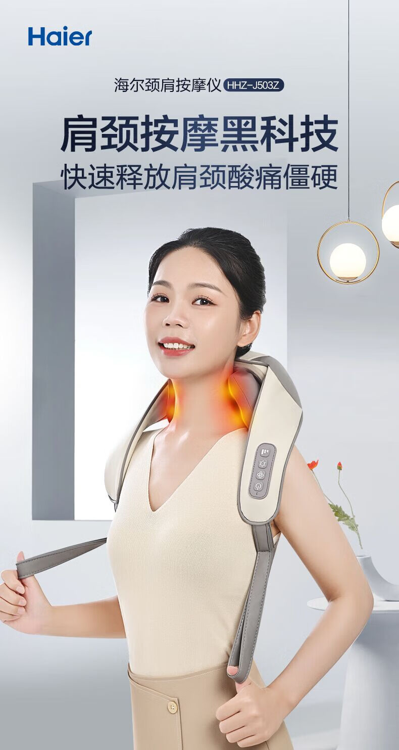 海尔(haier)颈椎按摩器按摩披肩按摩仪颈椎肩颈斜方肌腰背腿部颈部按摩器按摩枕头生日节日礼物送父母男女友 送爸爸妈妈老公老婆老人长辈HHZ-J503Z