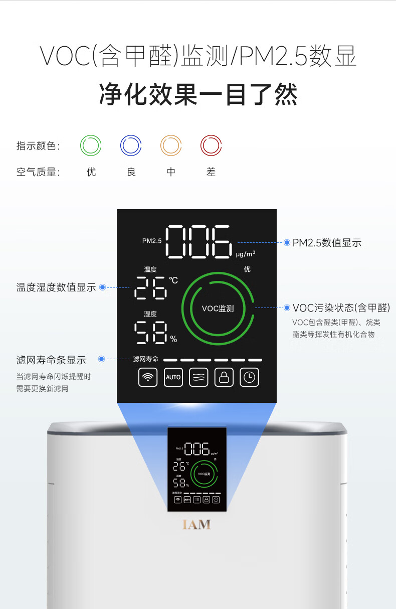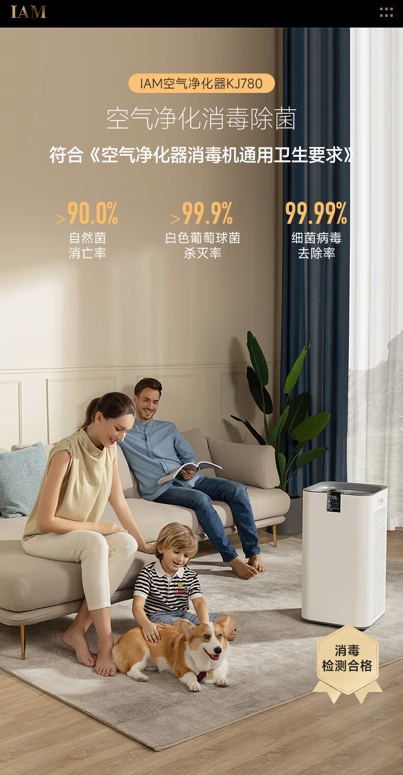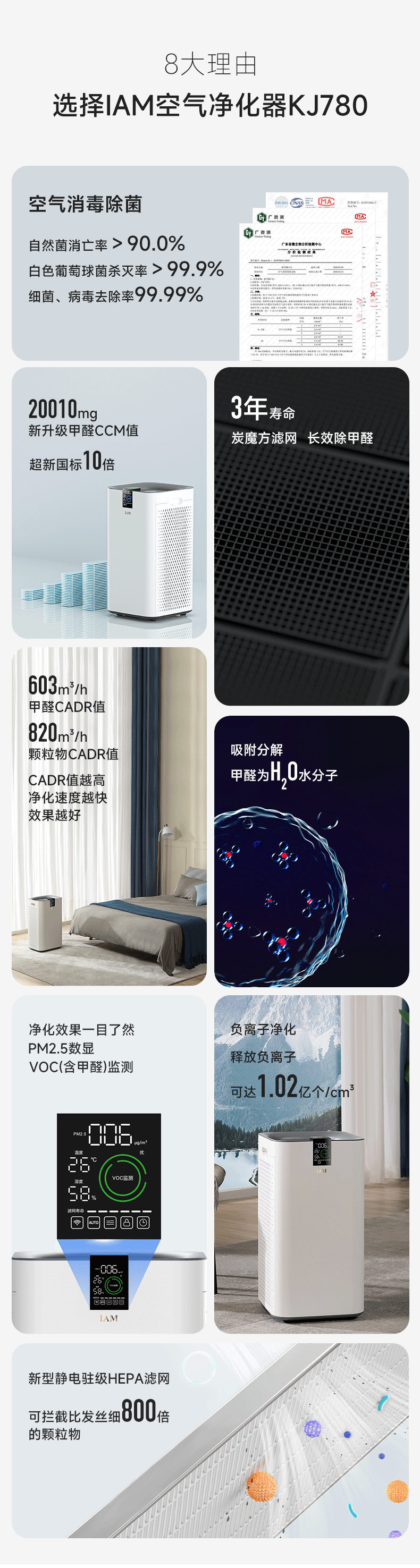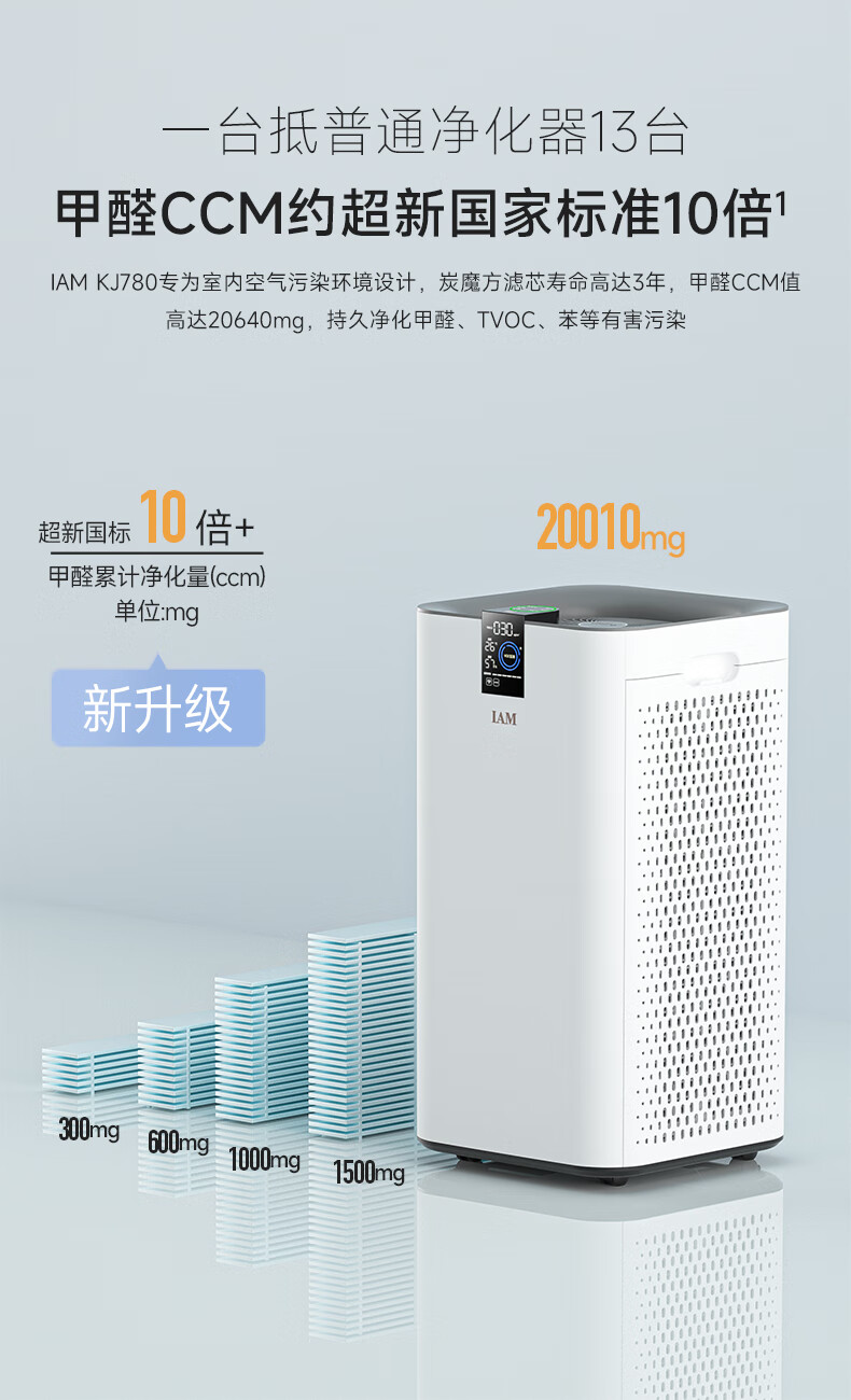 IAM 空气净化器 消毒除菌净化机 除甲醛雾霾异味 炭魔方3年长效分解甲醛780F