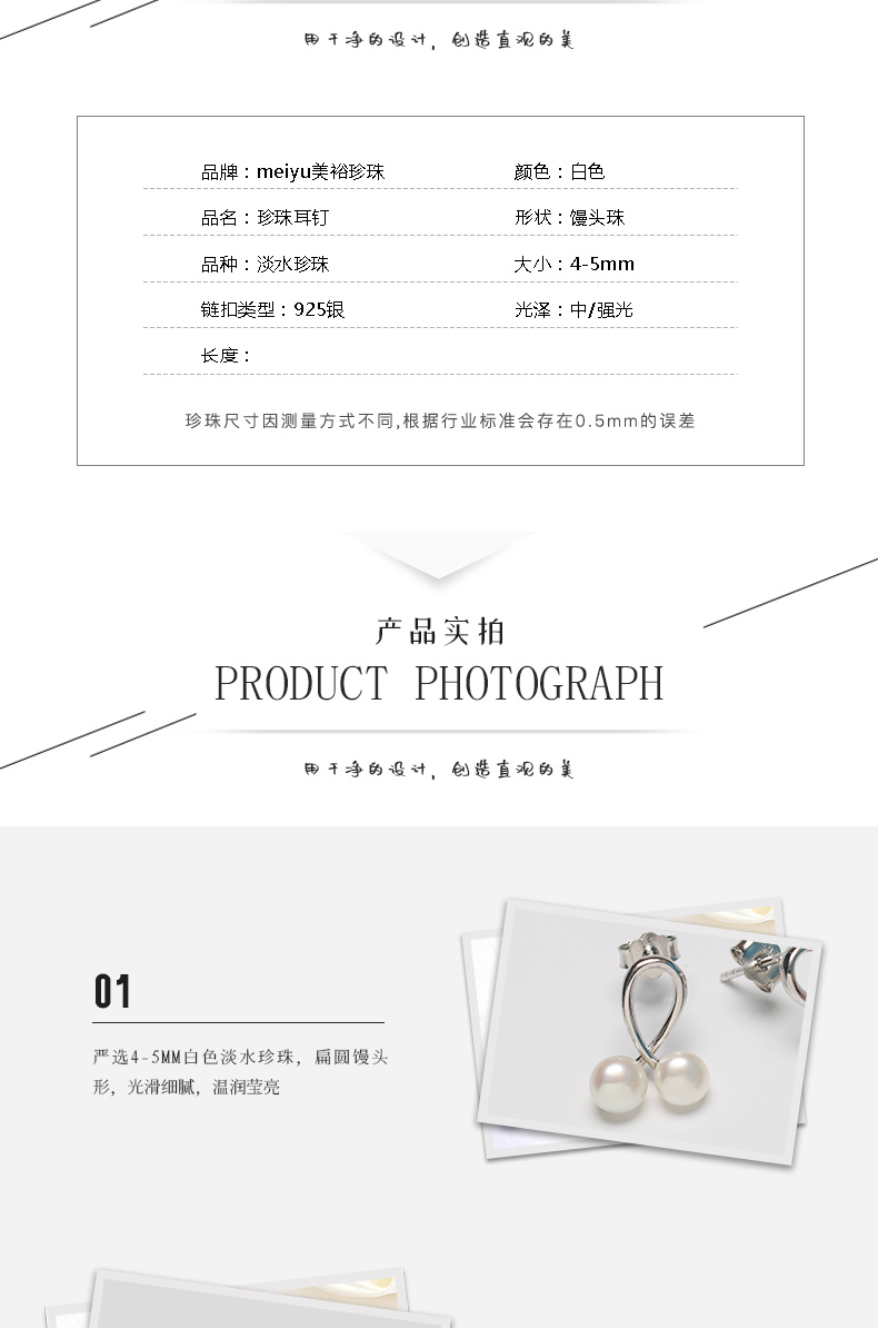 美裕 【樱桃】银925淡水珍珠耳钉4-5mm白 104993