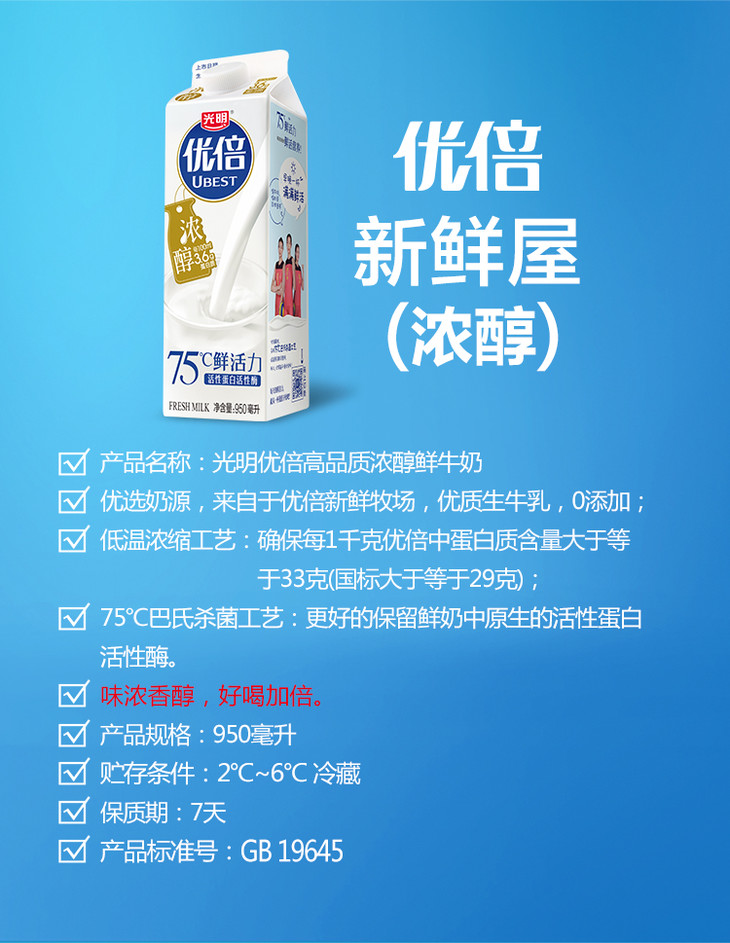 光明 优倍 950ml 浓醇鲜奶鲜牛奶