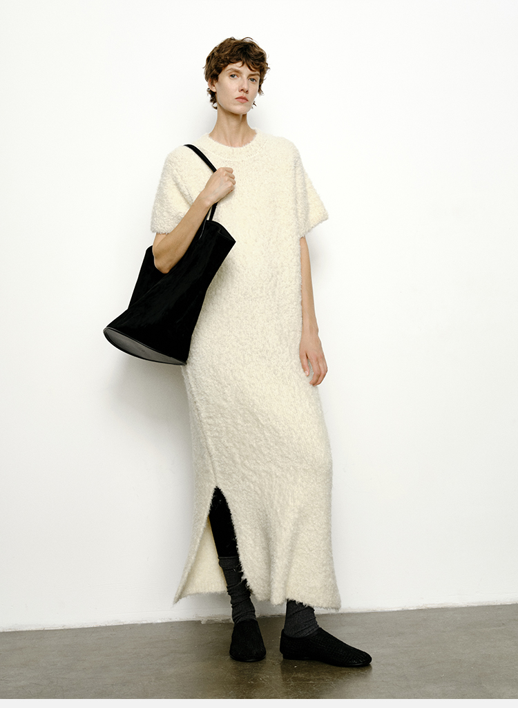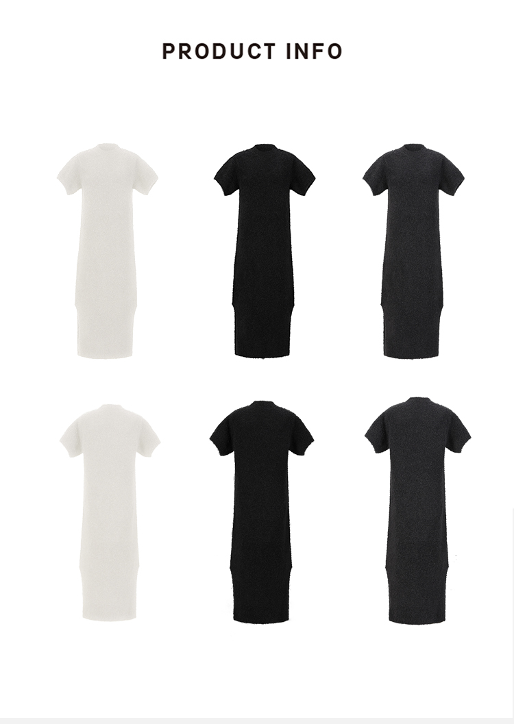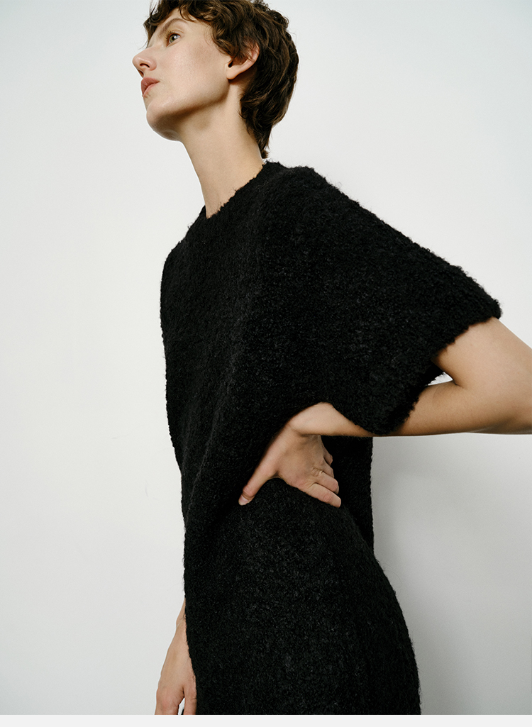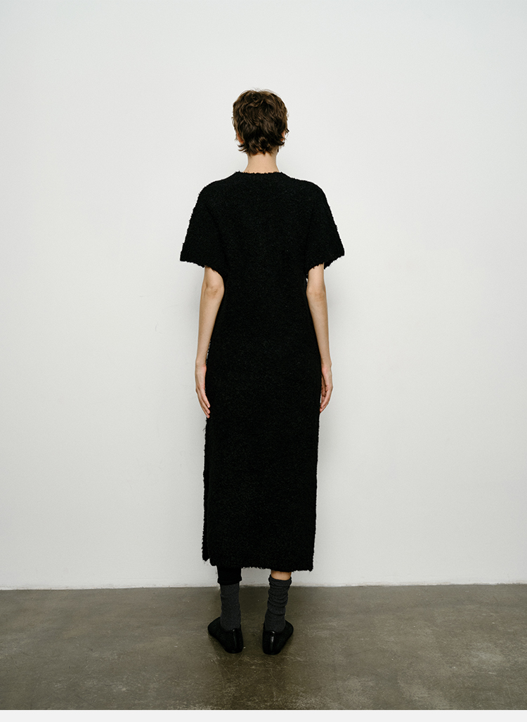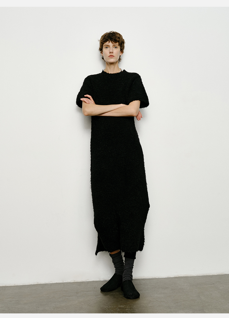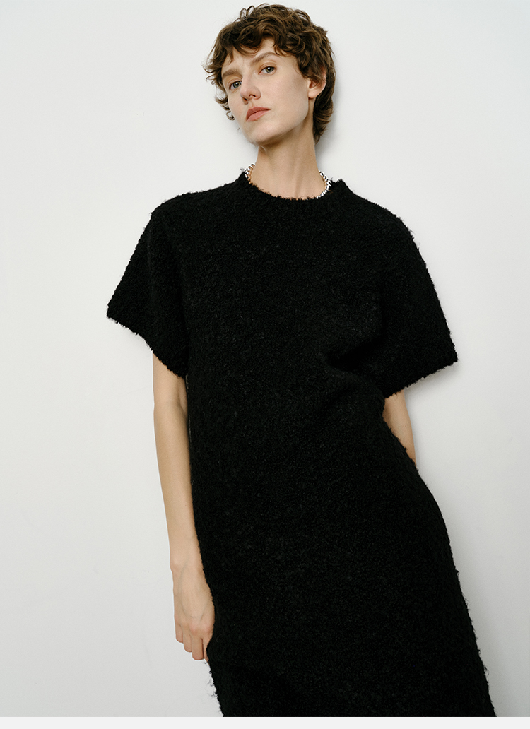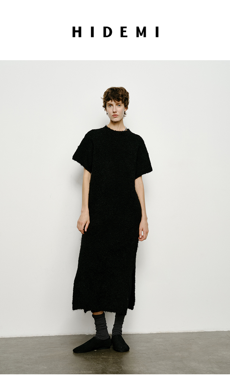 HIDEMI 极简圆领短袖羊毛圈圈纱针织连衣裙
