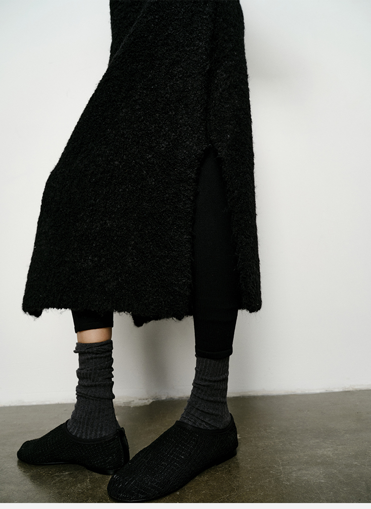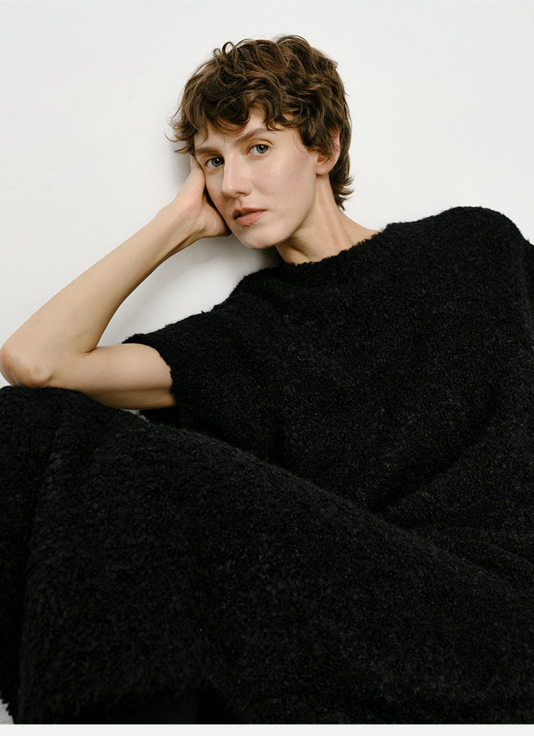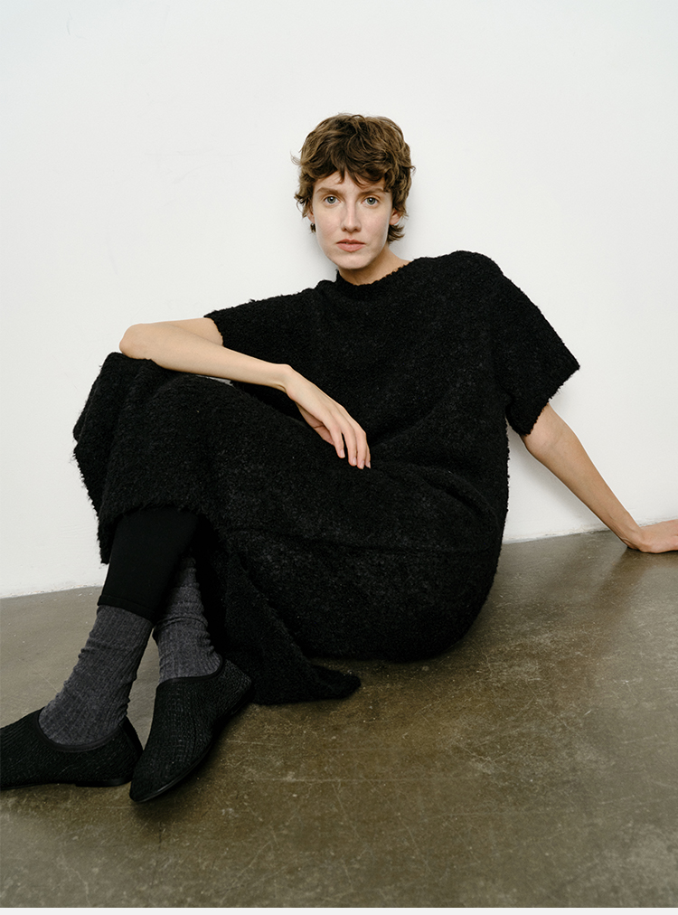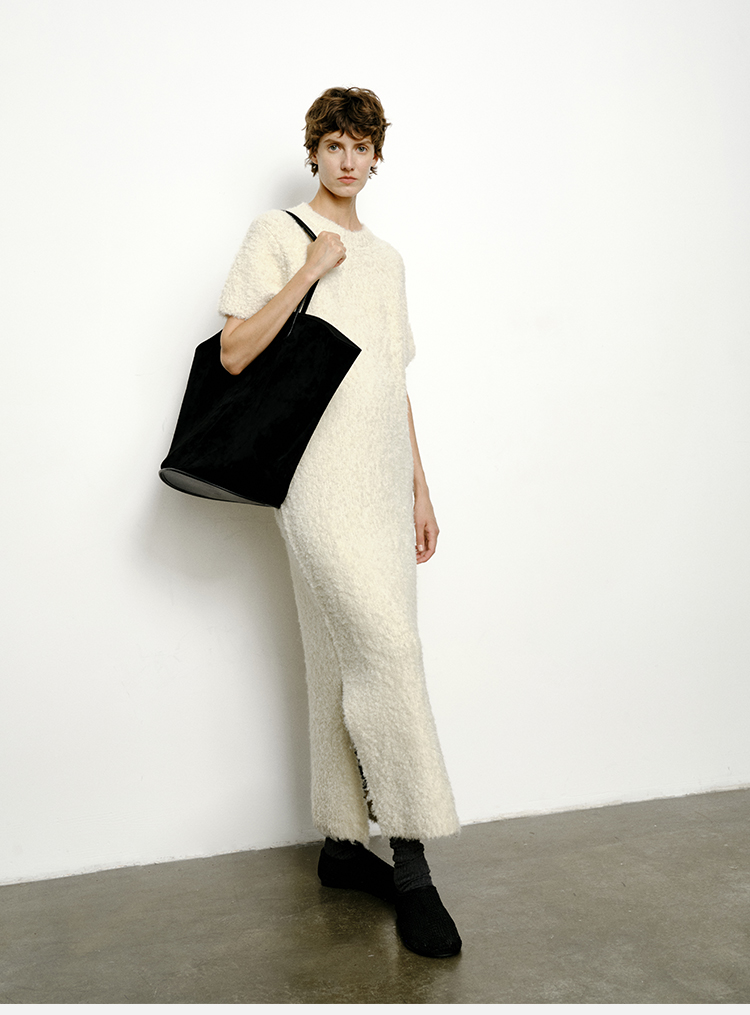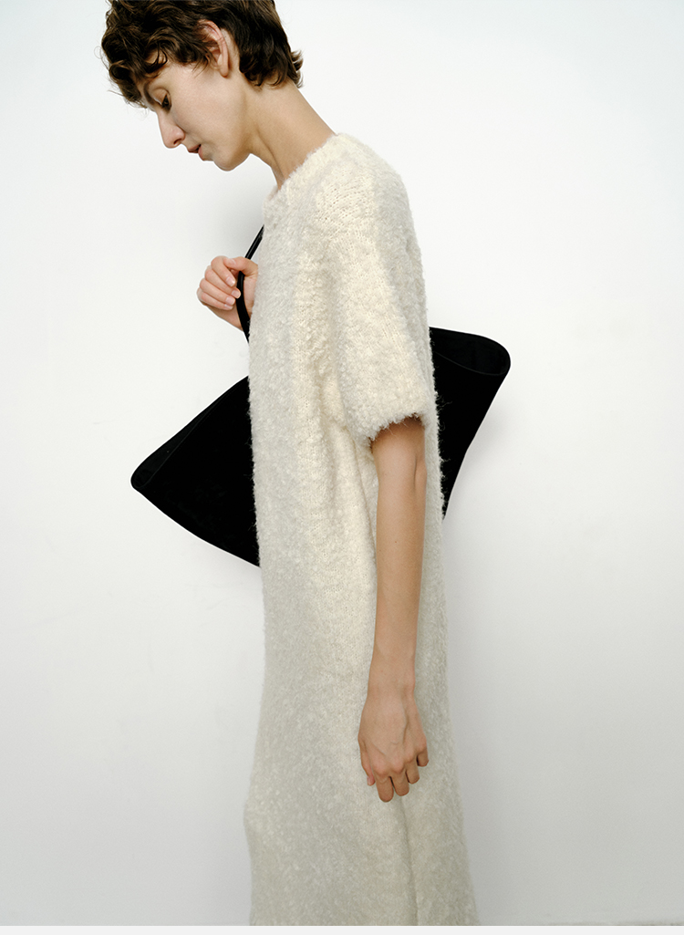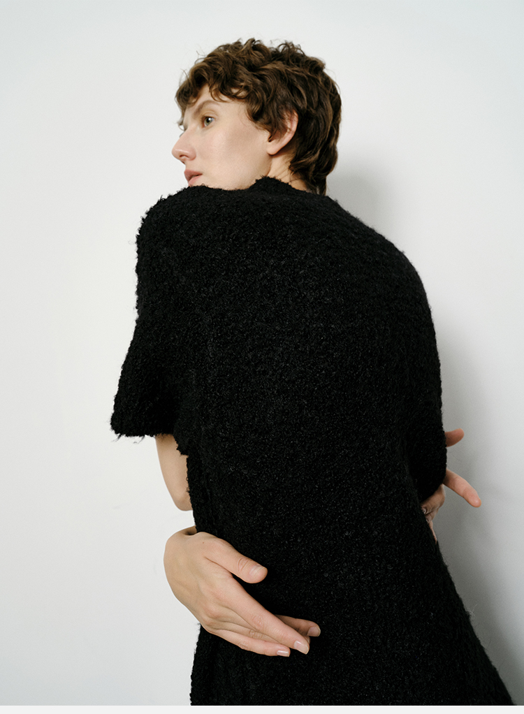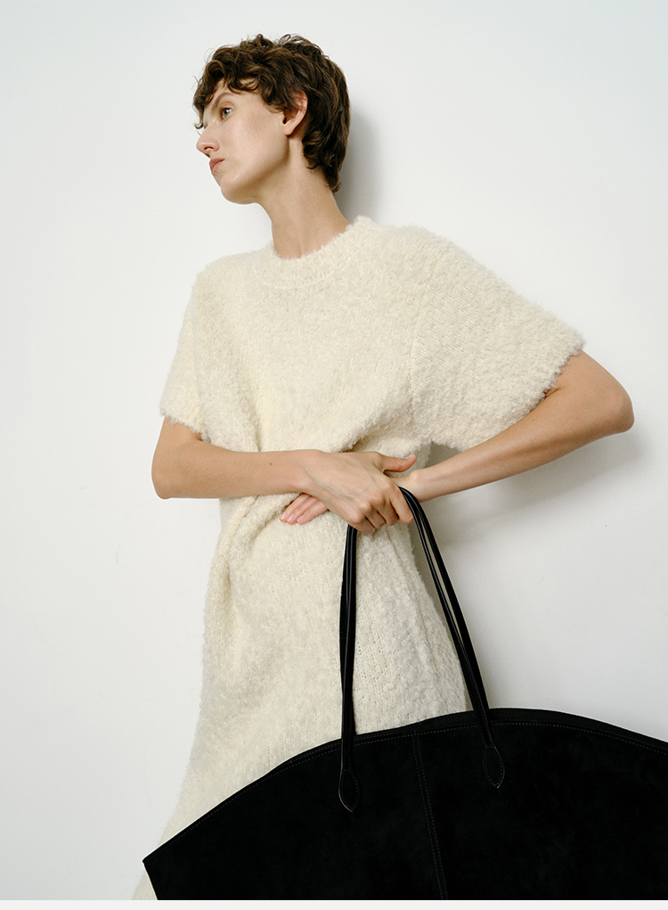HIDEMI 极简圆领短袖羊毛圈圈纱针织连衣裙