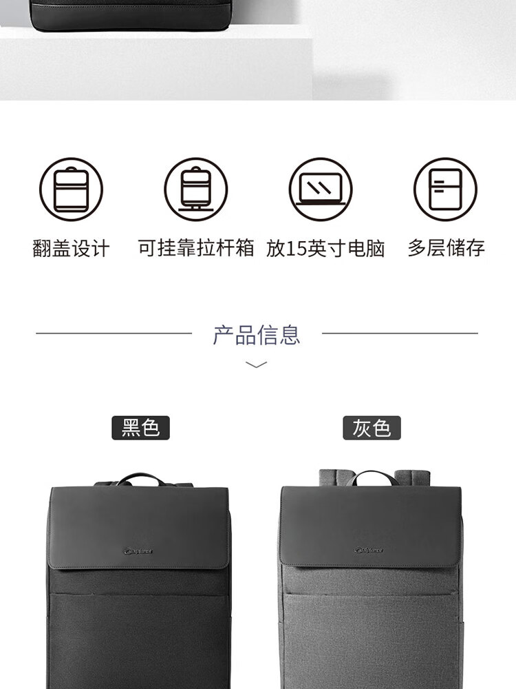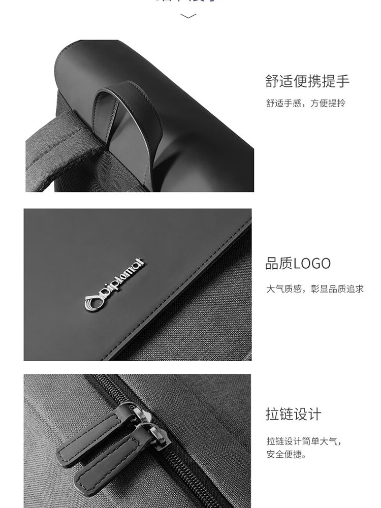 外交官【Diplomat 】双肩包休闲男女商务出差旅行时尚背包HM-2712L系列 -1灰色