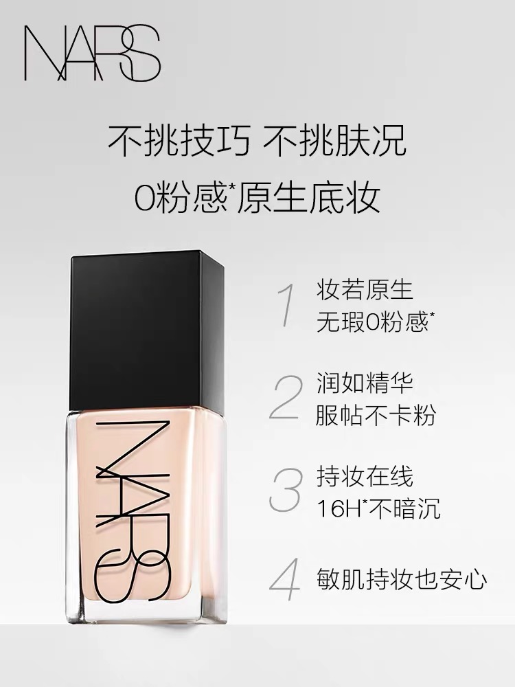 【干皮挚爱 0粉感奶油肌】NARS/娜斯超方瓶流光美肌粉底液30ml/大白饼10g/盒 养肤遮瑕 持色不暗沉 水润不卡粉