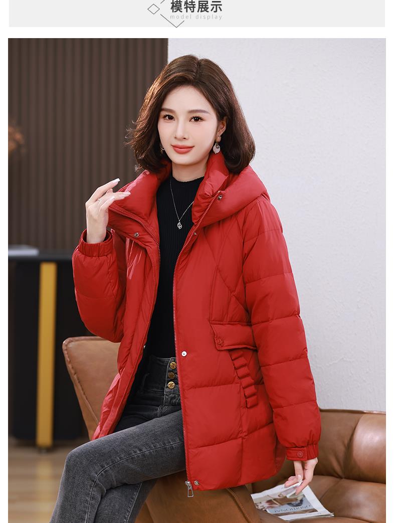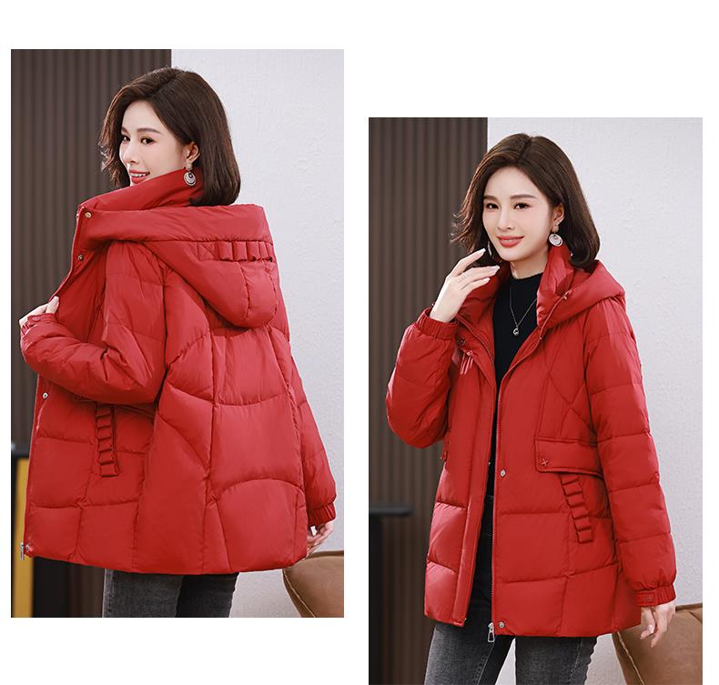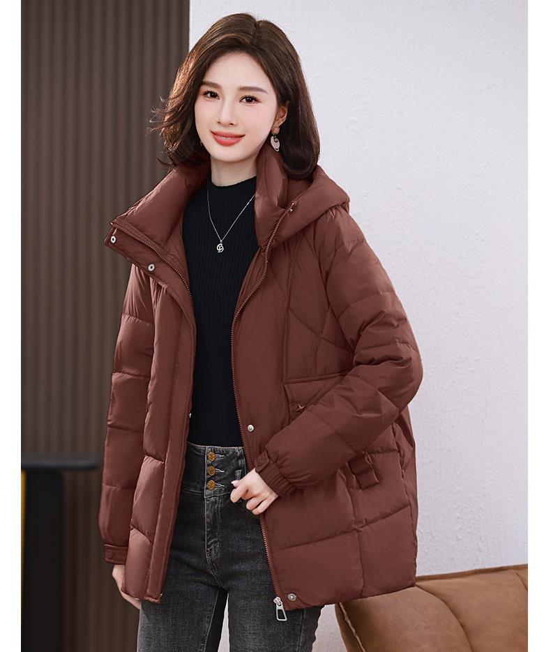 羽绒服女冬季2023新款中年妈妈洋气连帽小个子白鸭绒加厚保暖外套