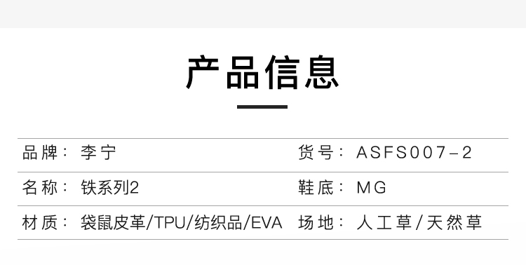 Lining/李宁铁2足球比赛训练MG短钉足球鞋成人男ASFS007-2