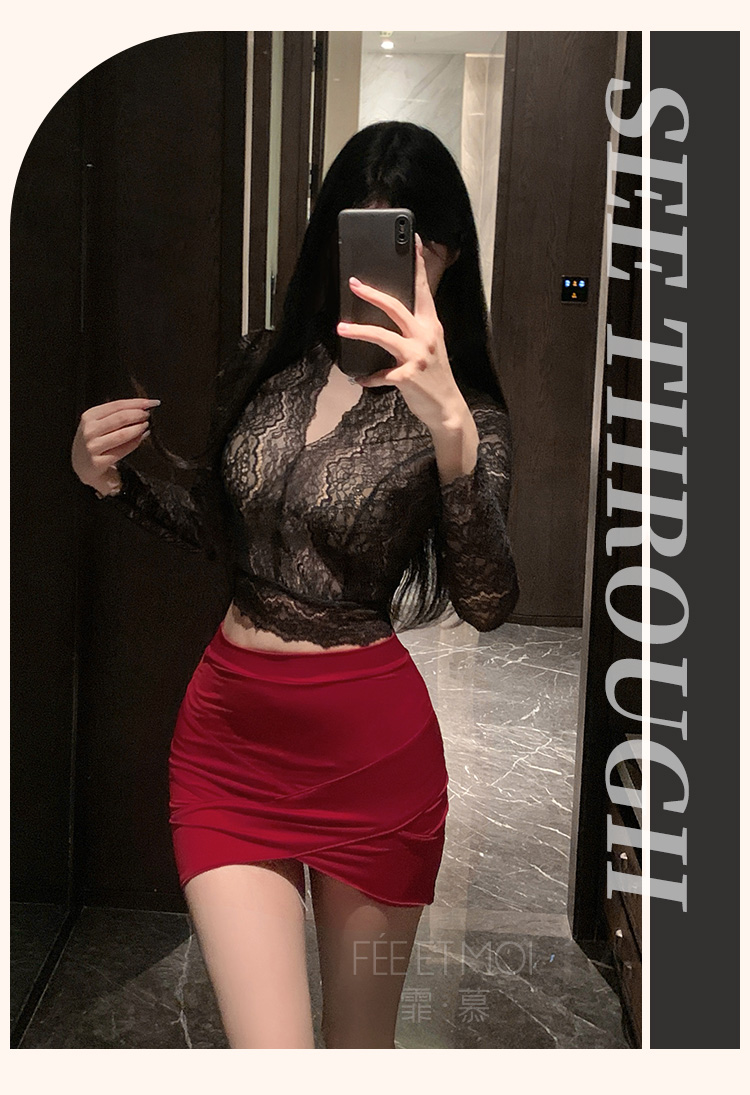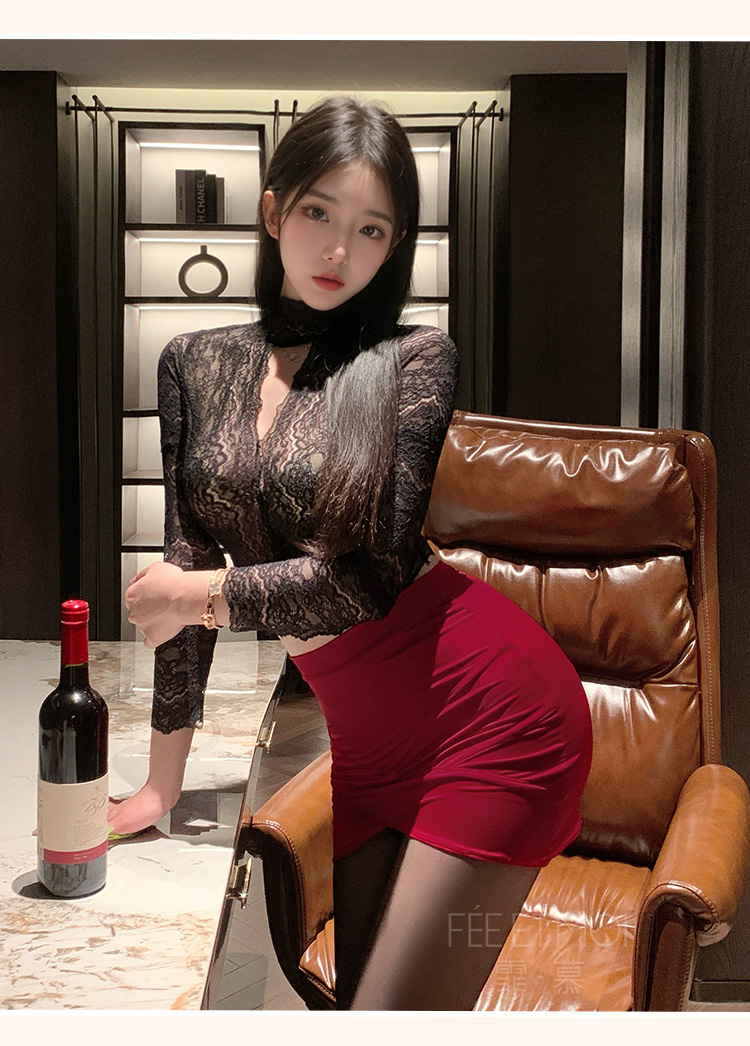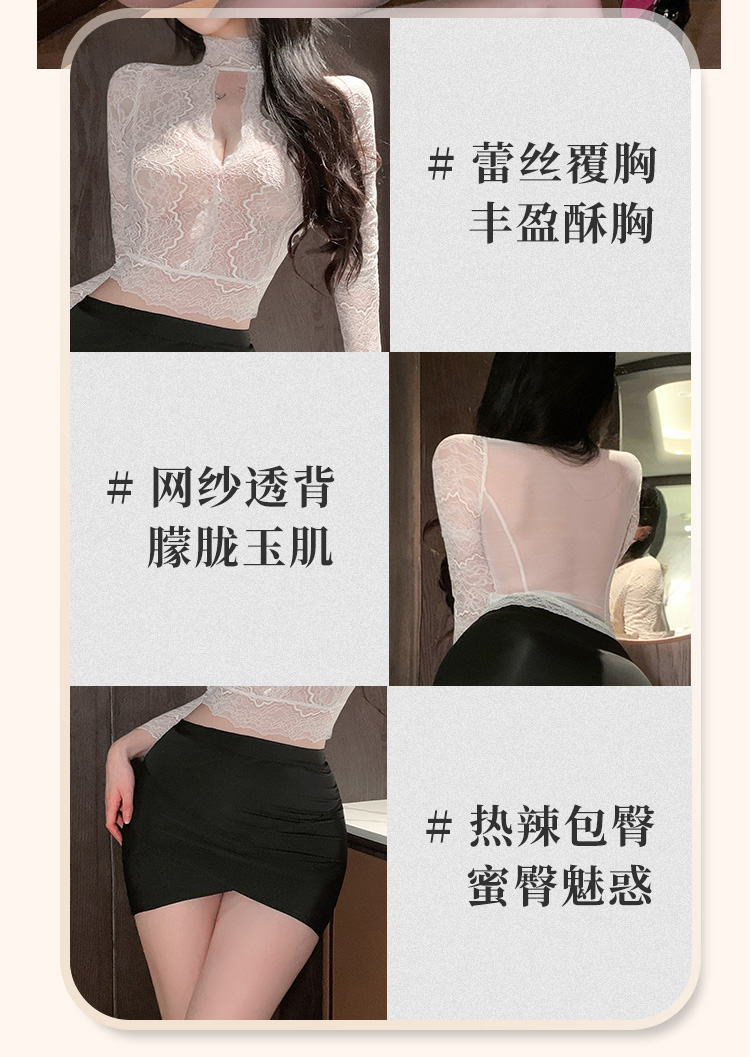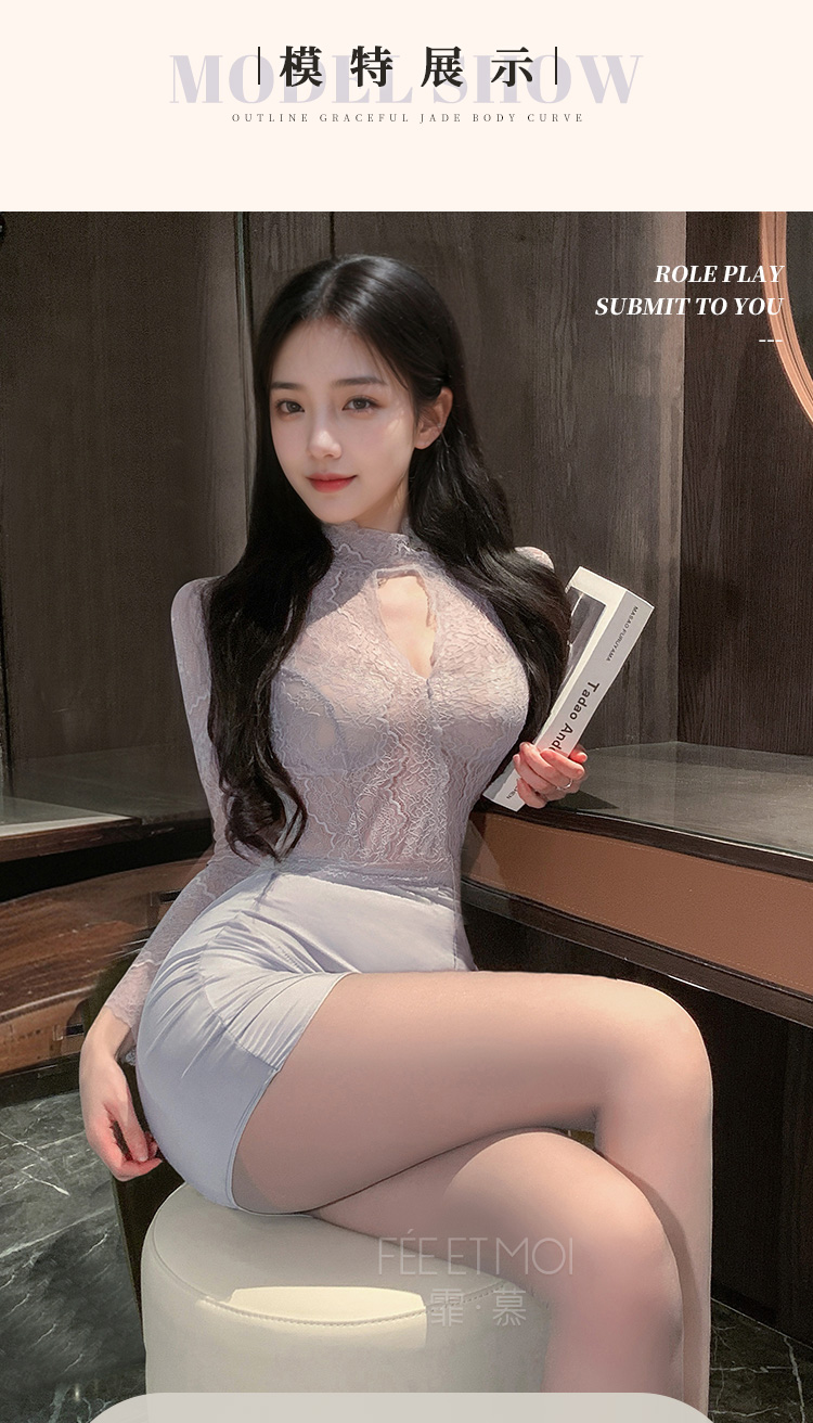 霏慕 娇柔秘书蕾丝透身套装6109 包臀短裙性感夫妻刺激制服性感睡衣