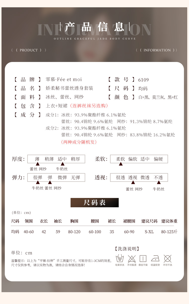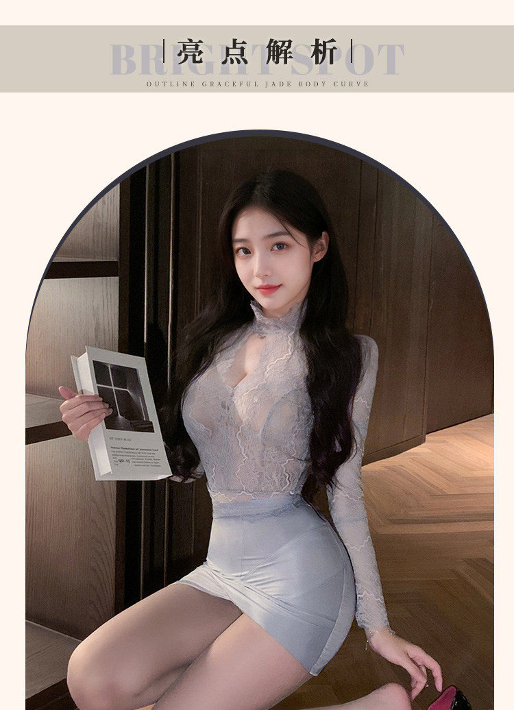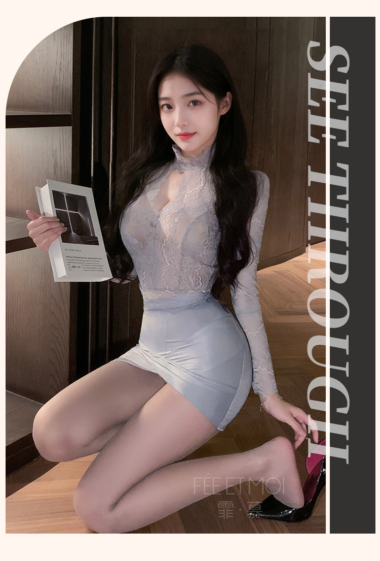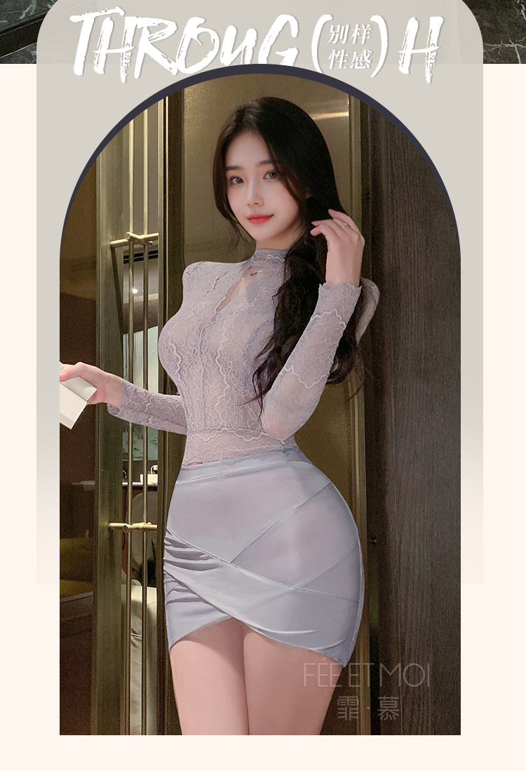 霏慕 娇柔秘书蕾丝透身套装6109 包臀短裙性感夫妻刺激制服性感睡衣