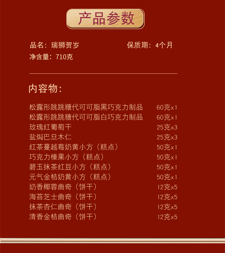 锦华瑞狮贺岁糕点礼盒710g【LY】【包邮直发】