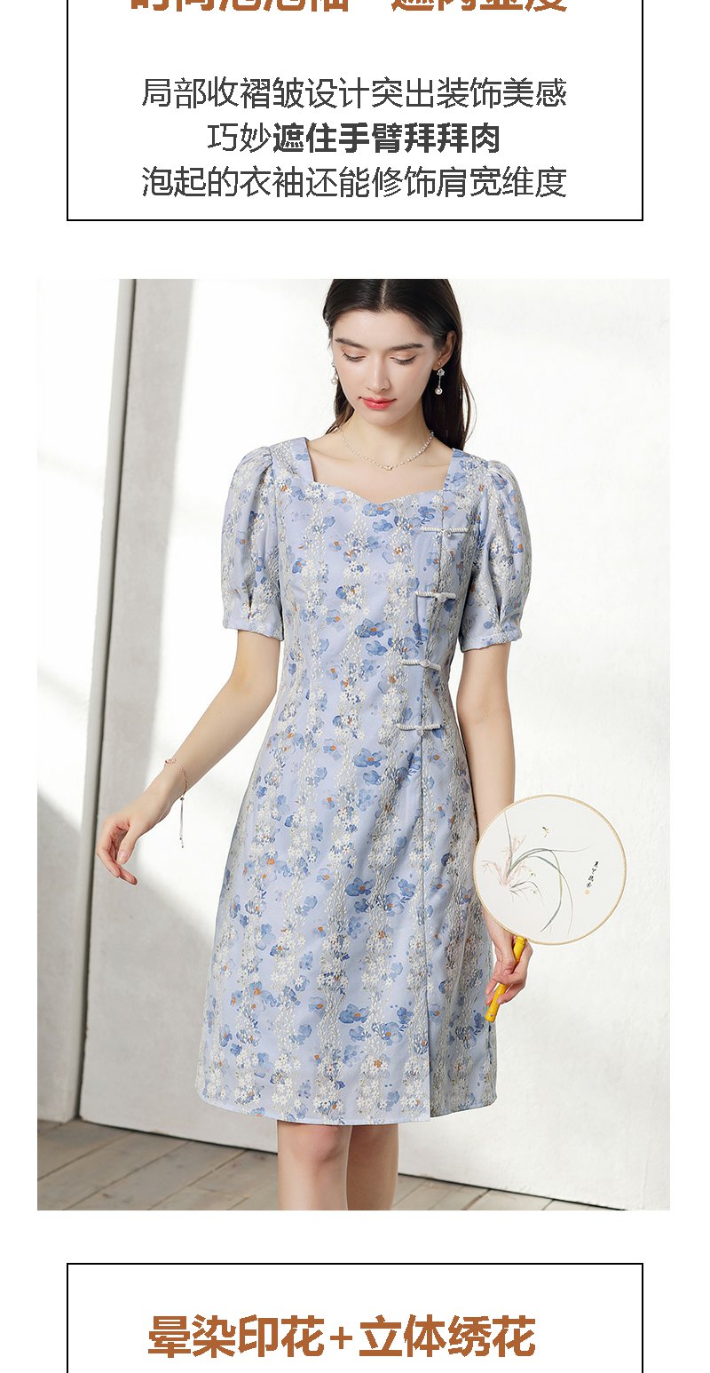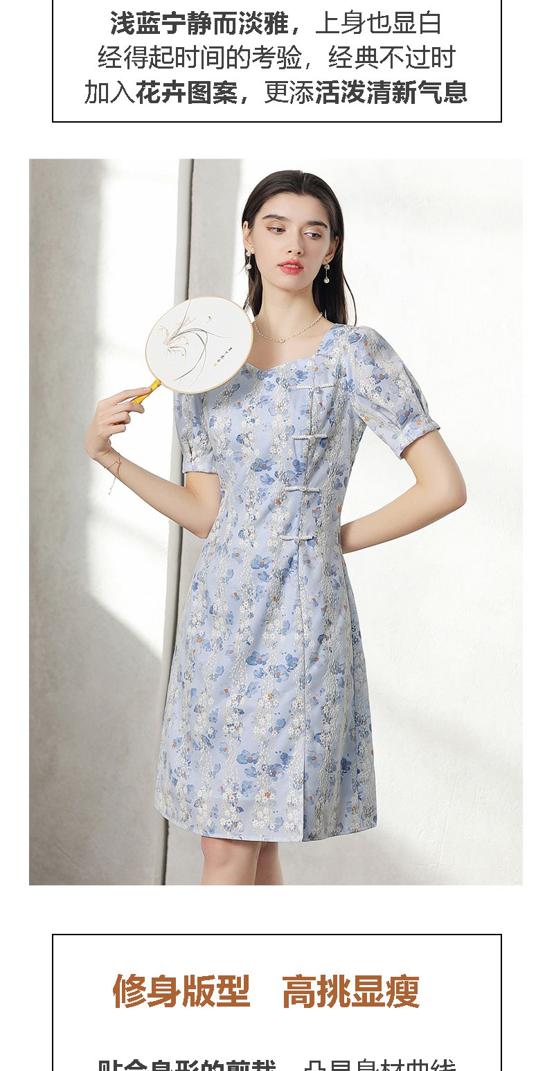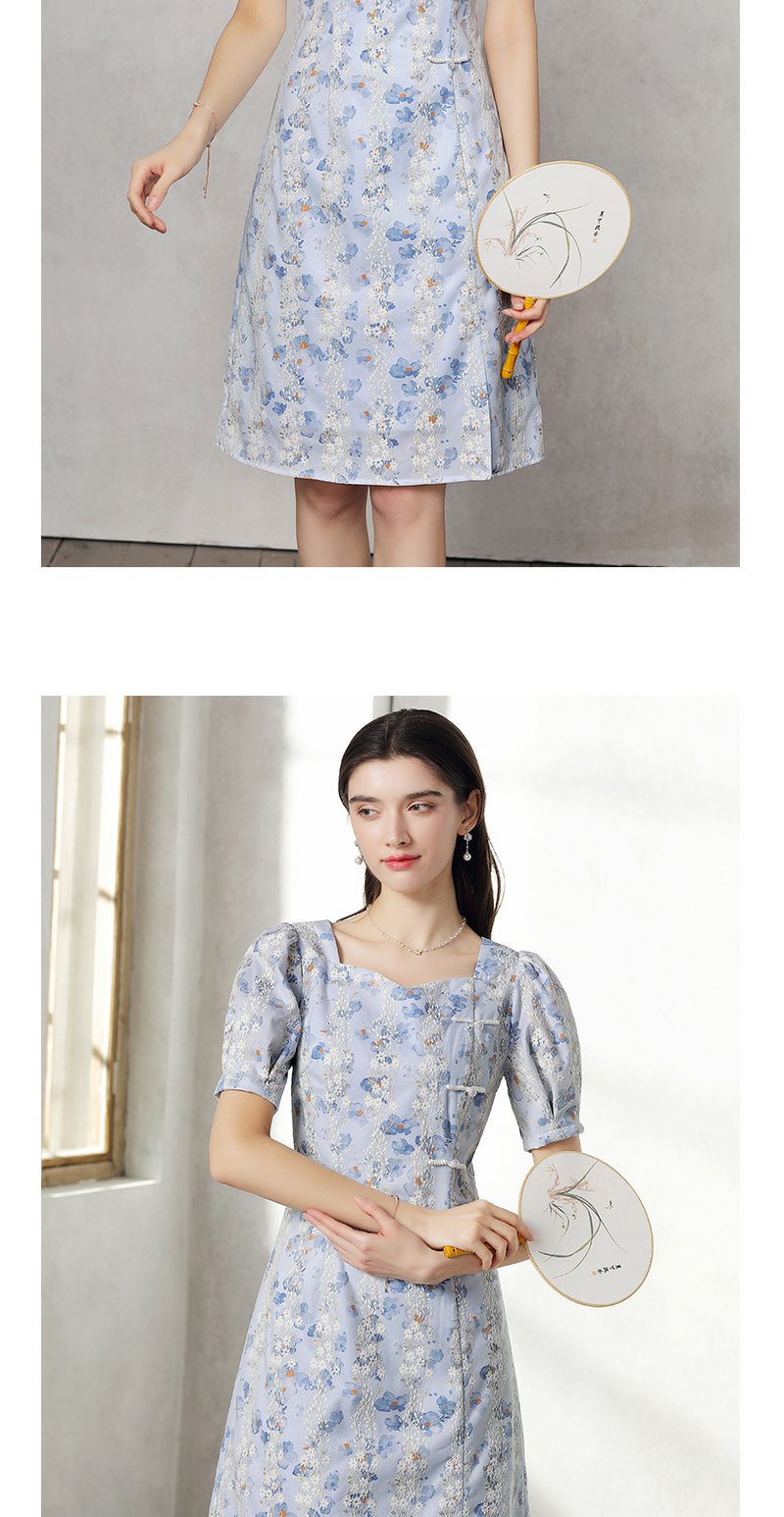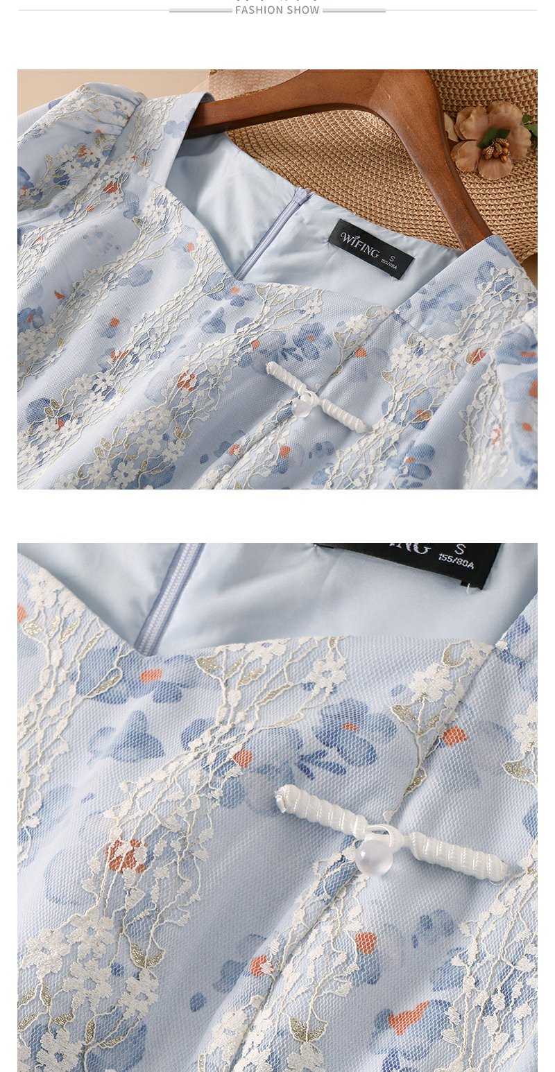 未风蓝色雪纺连衣裙女夏2024年夏季新款女装气质改良旗袍显瘦裙子