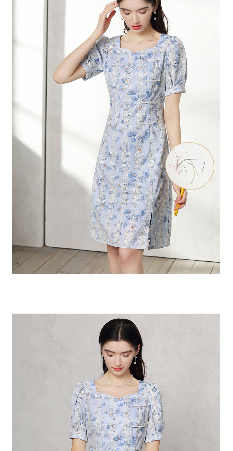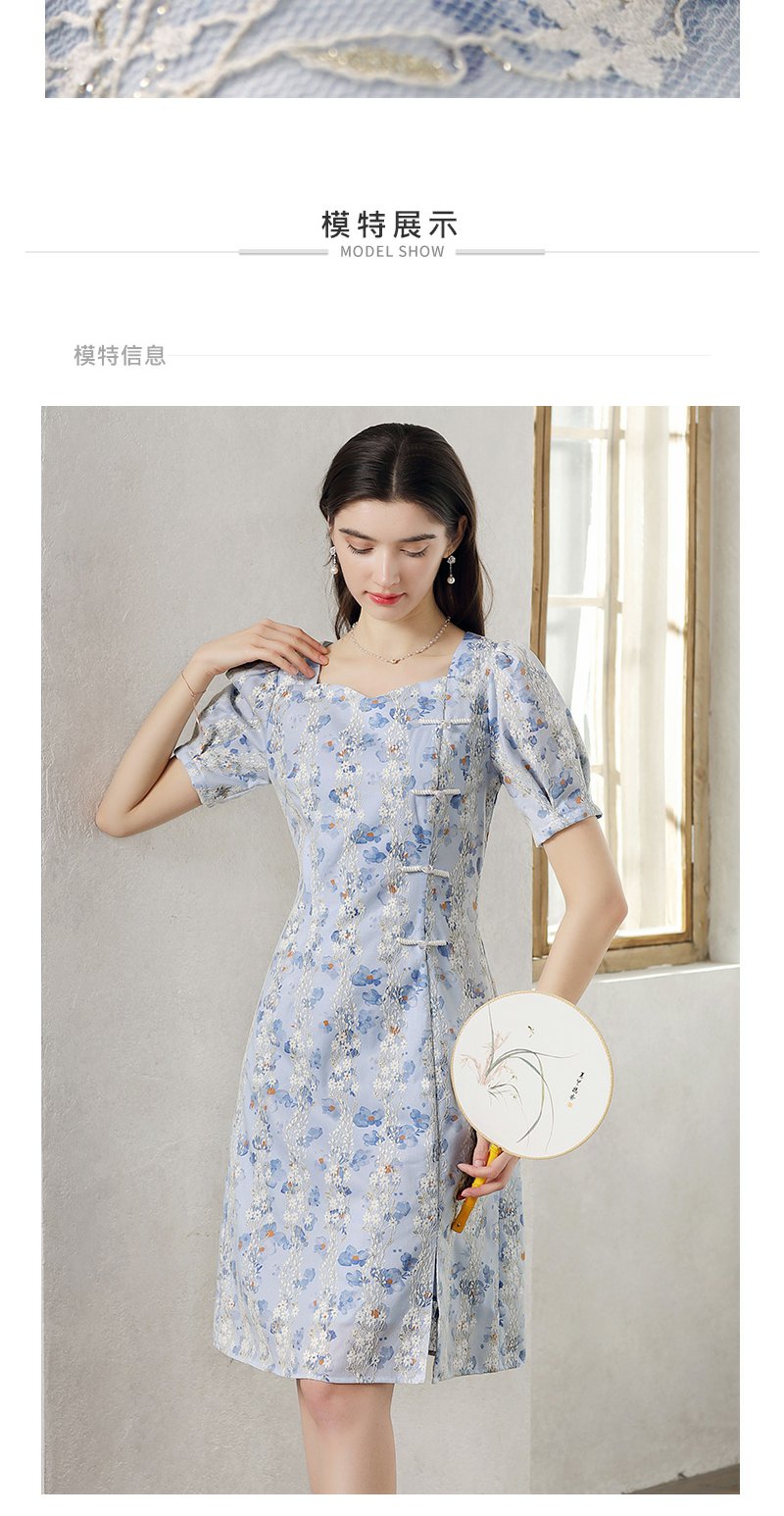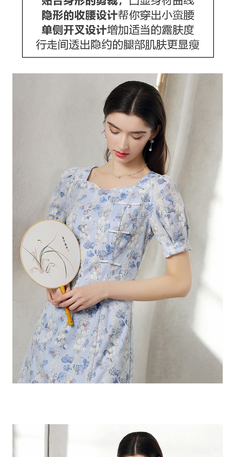 未风蓝色雪纺连衣裙女夏2024年夏季新款女装气质改良旗袍显瘦裙子