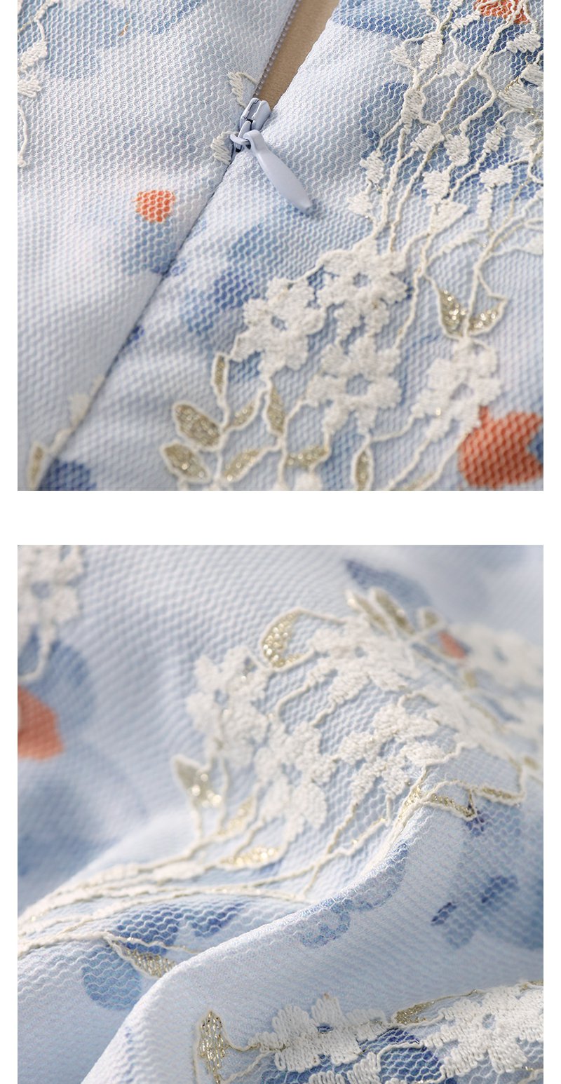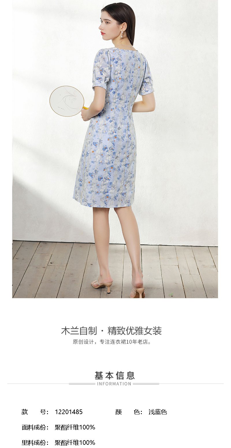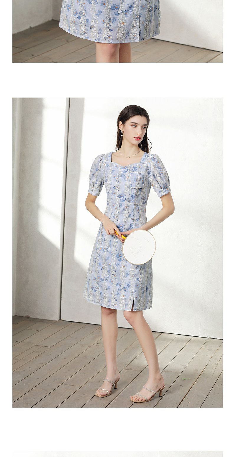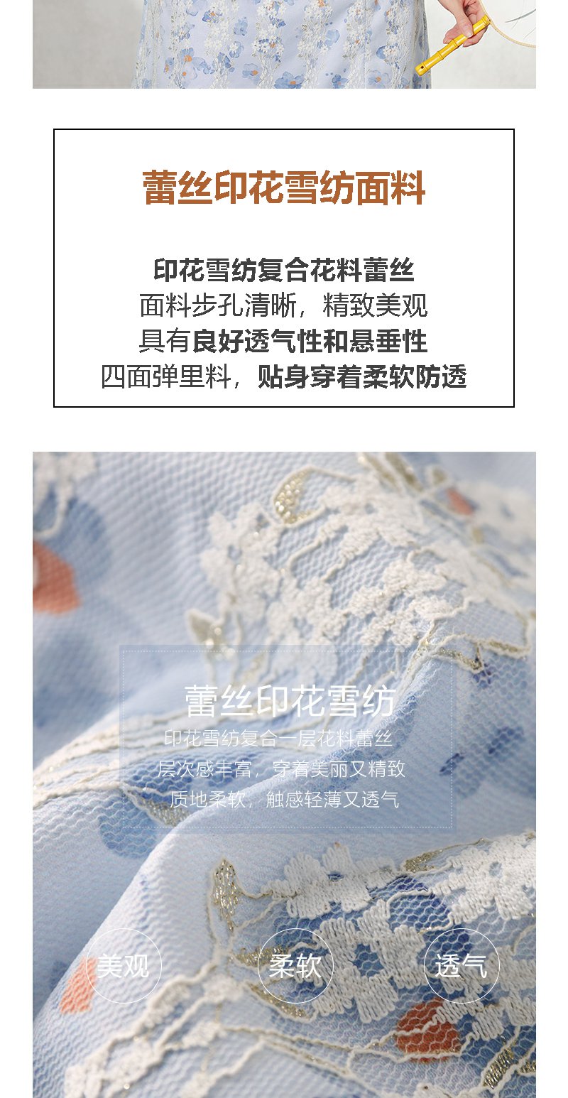 未风蓝色雪纺连衣裙女夏2024年夏季新款女装气质改良旗袍显瘦裙子