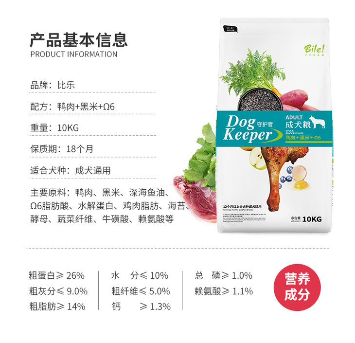 比乐 守护者鸭肉燕麦狗粮 10kg
