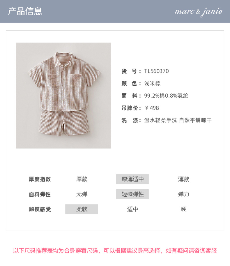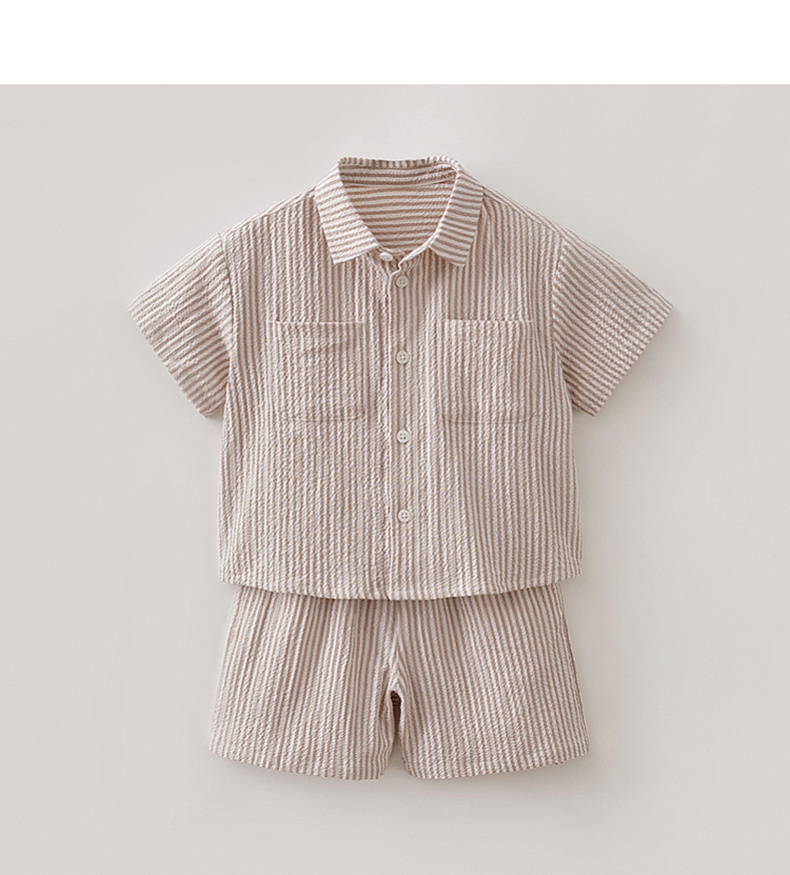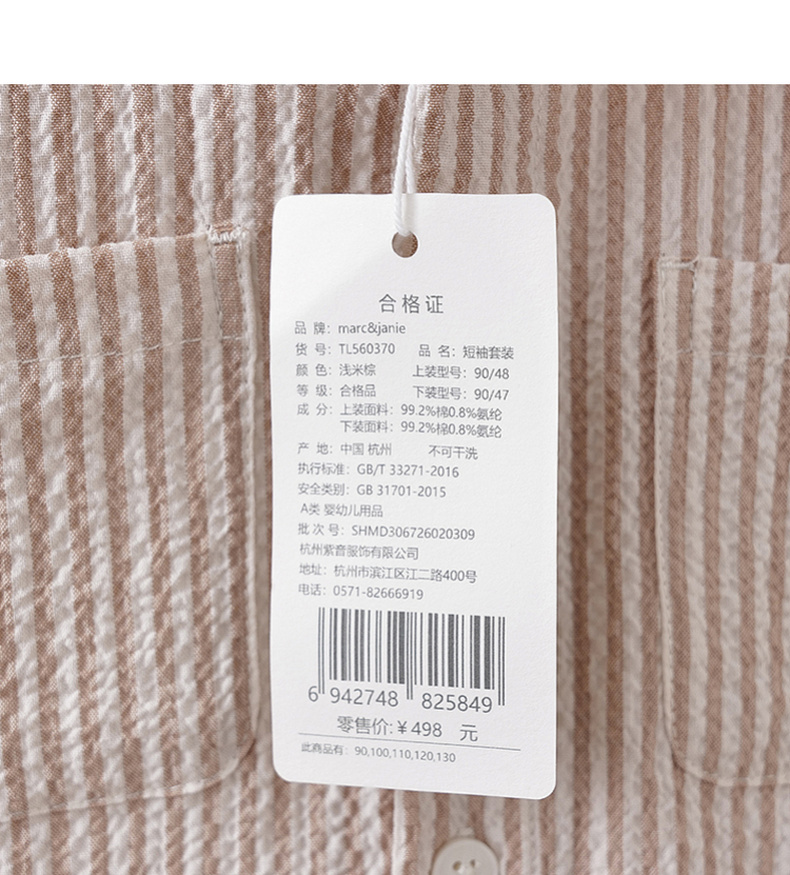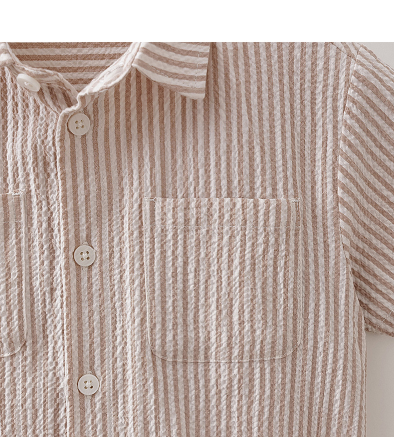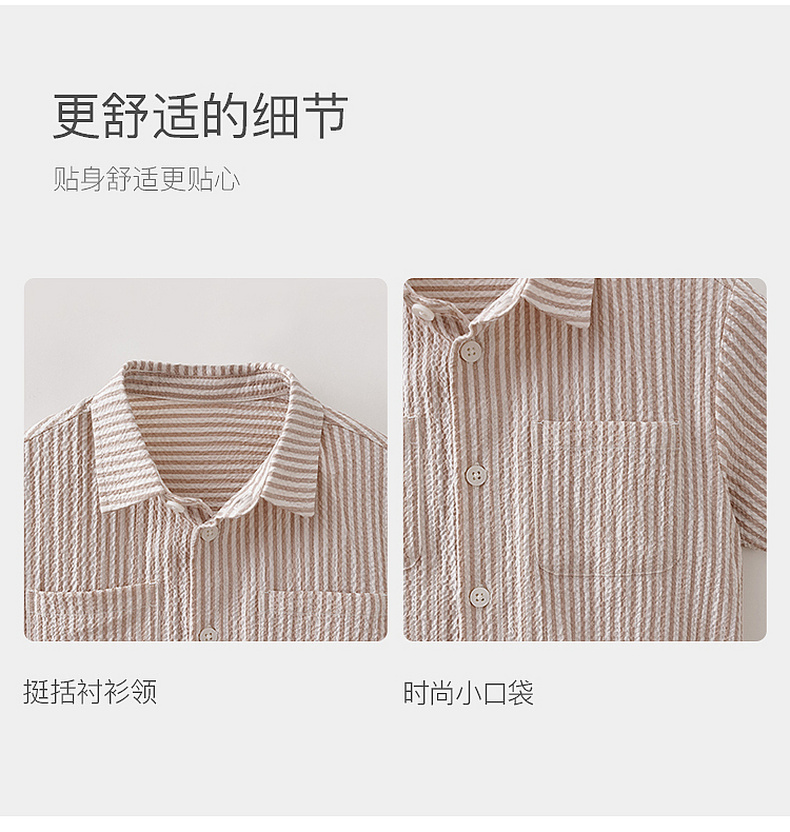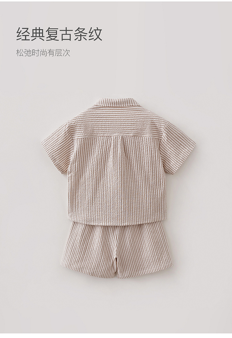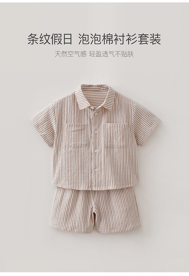 马克珍妮条纹假日男童泡泡棉衬衫套装2026年夏装新款560370