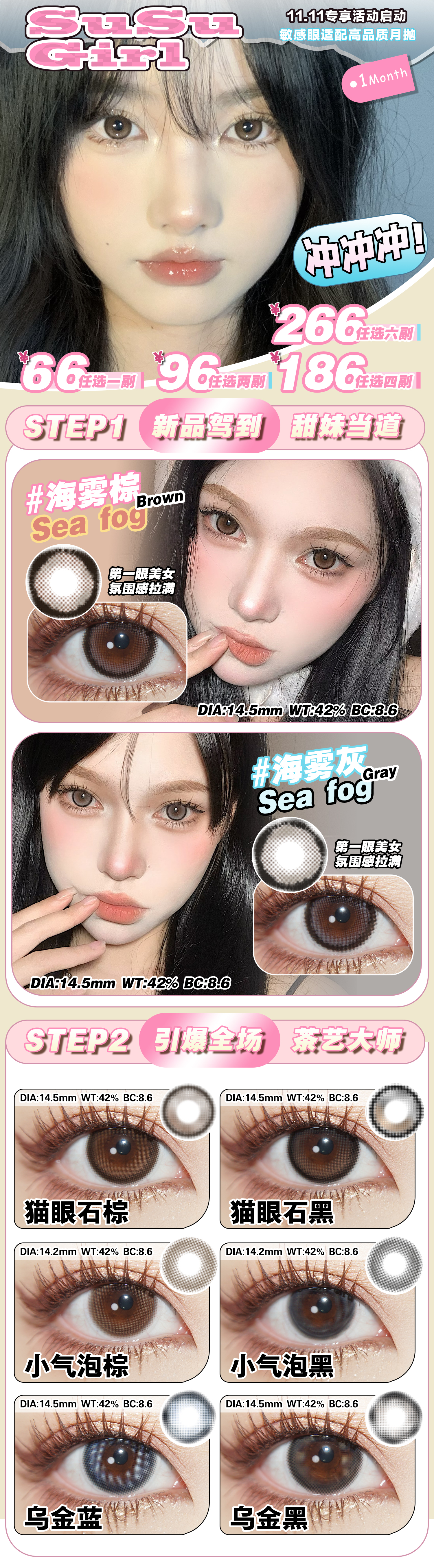 susugirl 月抛 活动合集【海雾灰/海雾棕/小气泡棕/小气泡黑/猫眼石黑/猫眼石棕/乌金黑/乌金蓝】