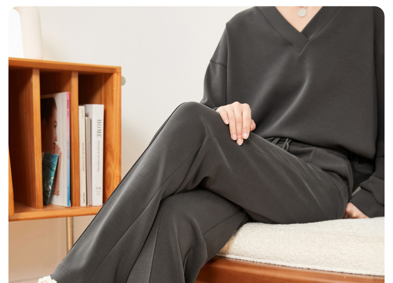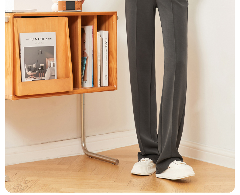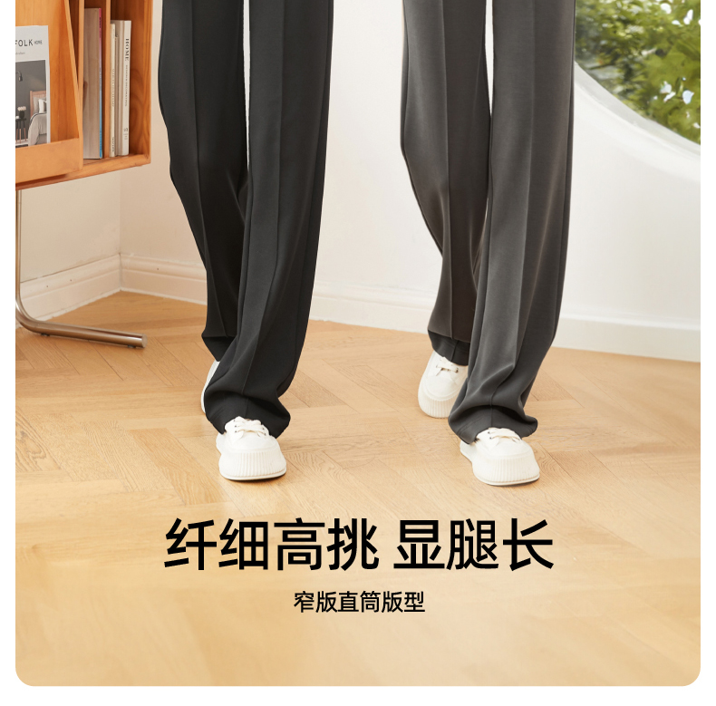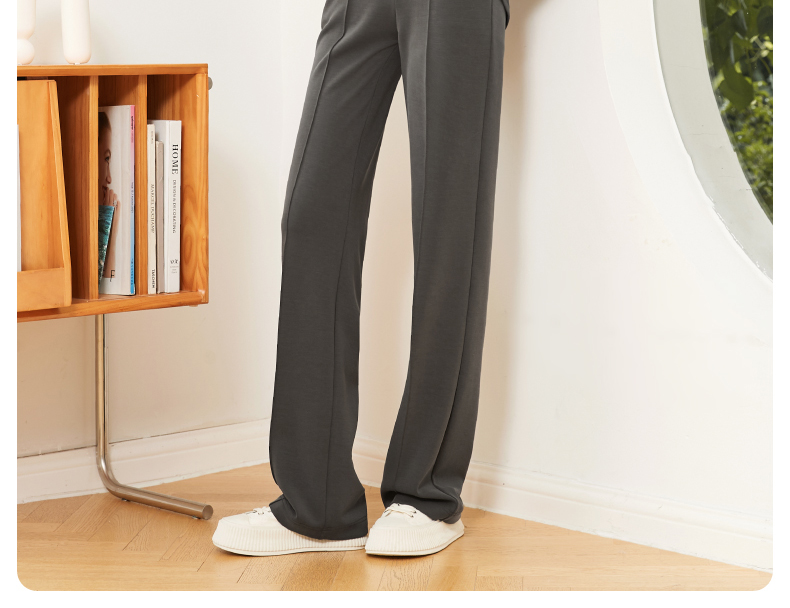 逸阳灰色阔腿女秋款高腰直筒莫代尔休闲窄版空气裤小个子0557