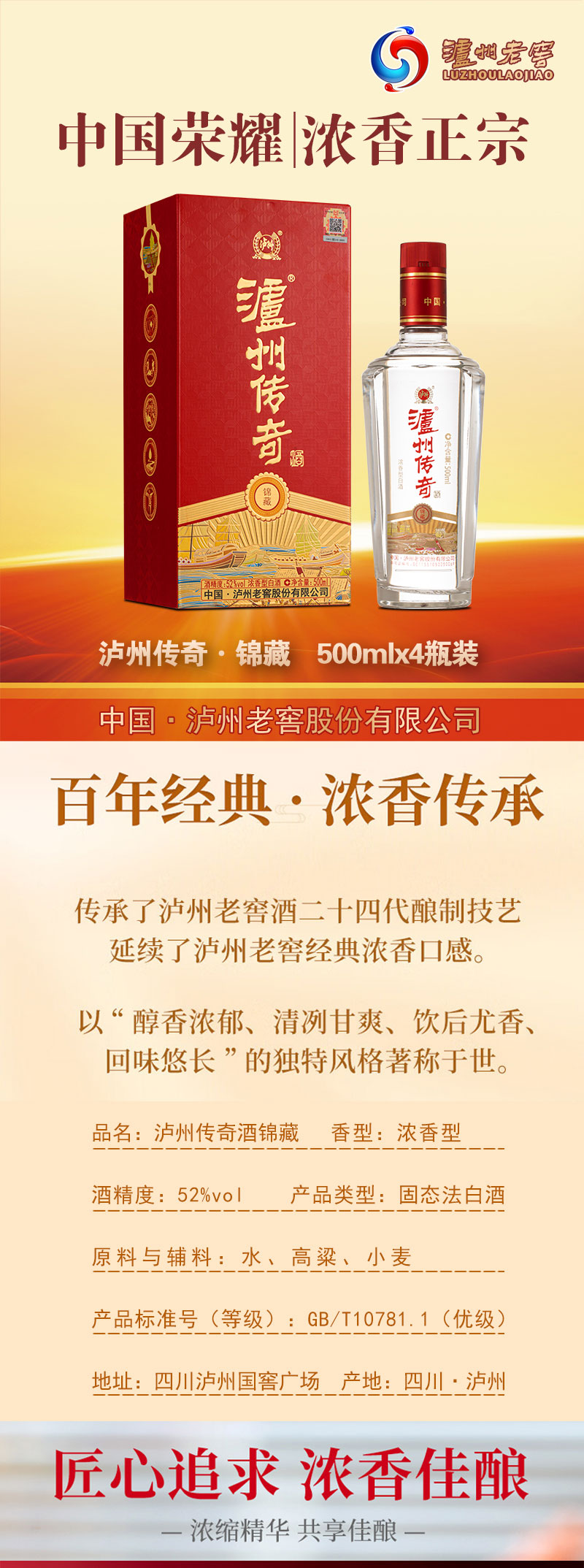 【泸州老窖出品 京东快递发货】泸州传奇500ml*4白酒 纯粮酿造 整箱发货