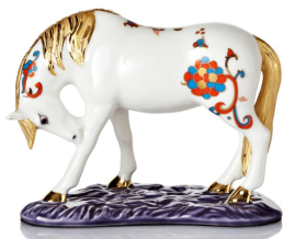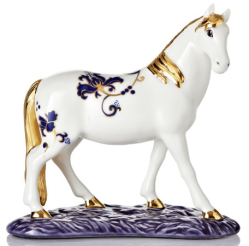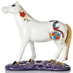 【乾唐轩官方旗舰店】活瓷 乾唐彩陶瓷5寸郎士宁马 白色·彩釉·鎏金单个
