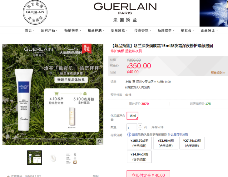 官方15ml售价是350RMB,我们香港柜台内部渠道到货,最新款,我们福利价只要139元!