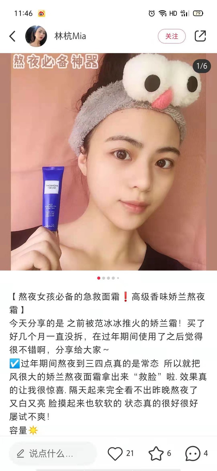熬夜党必备神器!娇兰熬夜霜15ml,自用款!最近需求量最大的一款面霜,被好多微博网红称之“神霜”哪怕一夜只睡2小时 涂上它,第二天肤色都不会暗沉,皮肤状态好到发光!