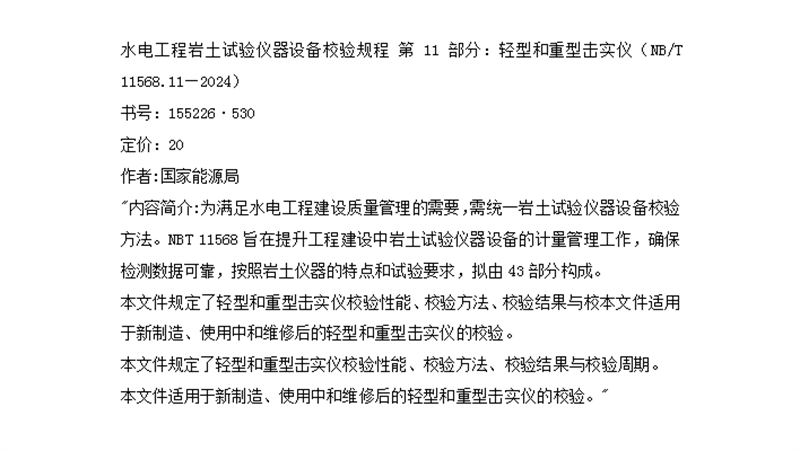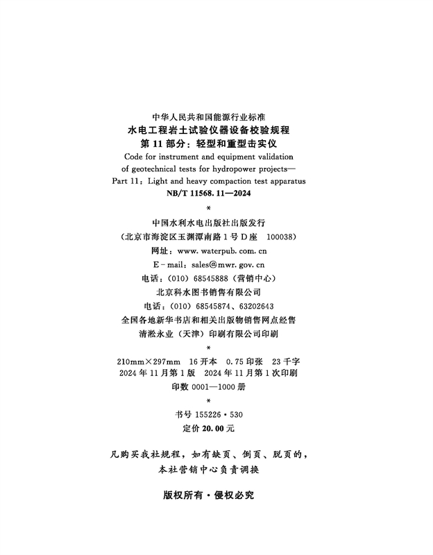 水电工程岩土试验仪器设备校验规程 第11部分:轻型和重型击实仪(NB/T 11568.11—2024)