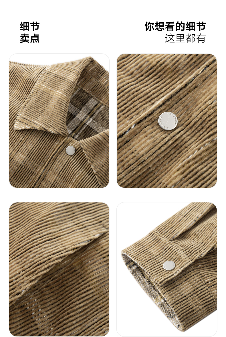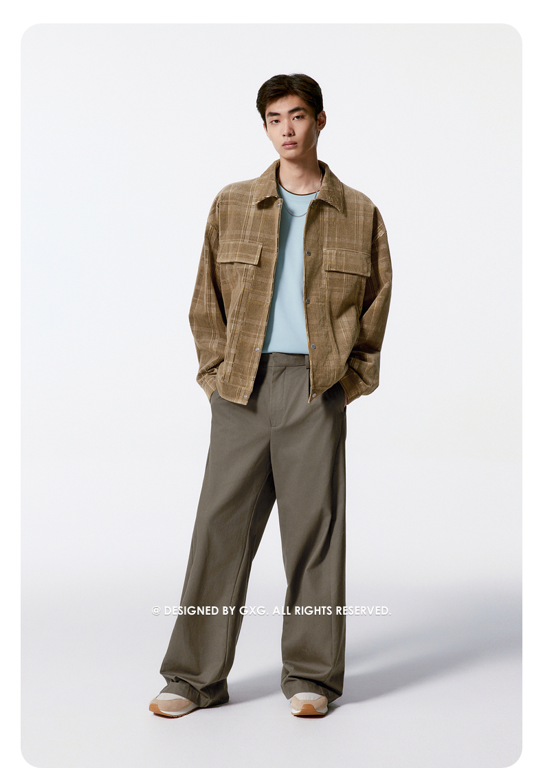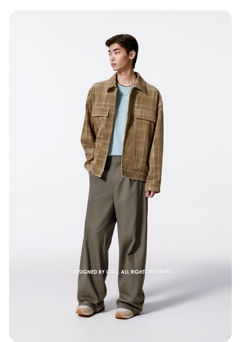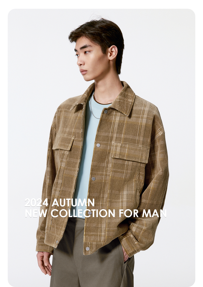 GXG男装 复古格纹灯芯绒夹克男 24年秋热卖G24X213016