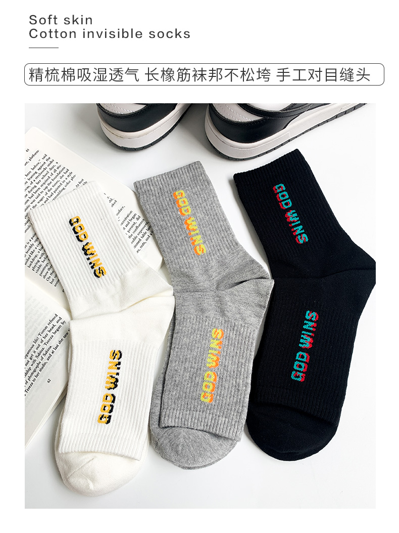 足装秀24新款夏季男士中筒袜棉质百搭轻薄透气吸汗中邦运动男袜子