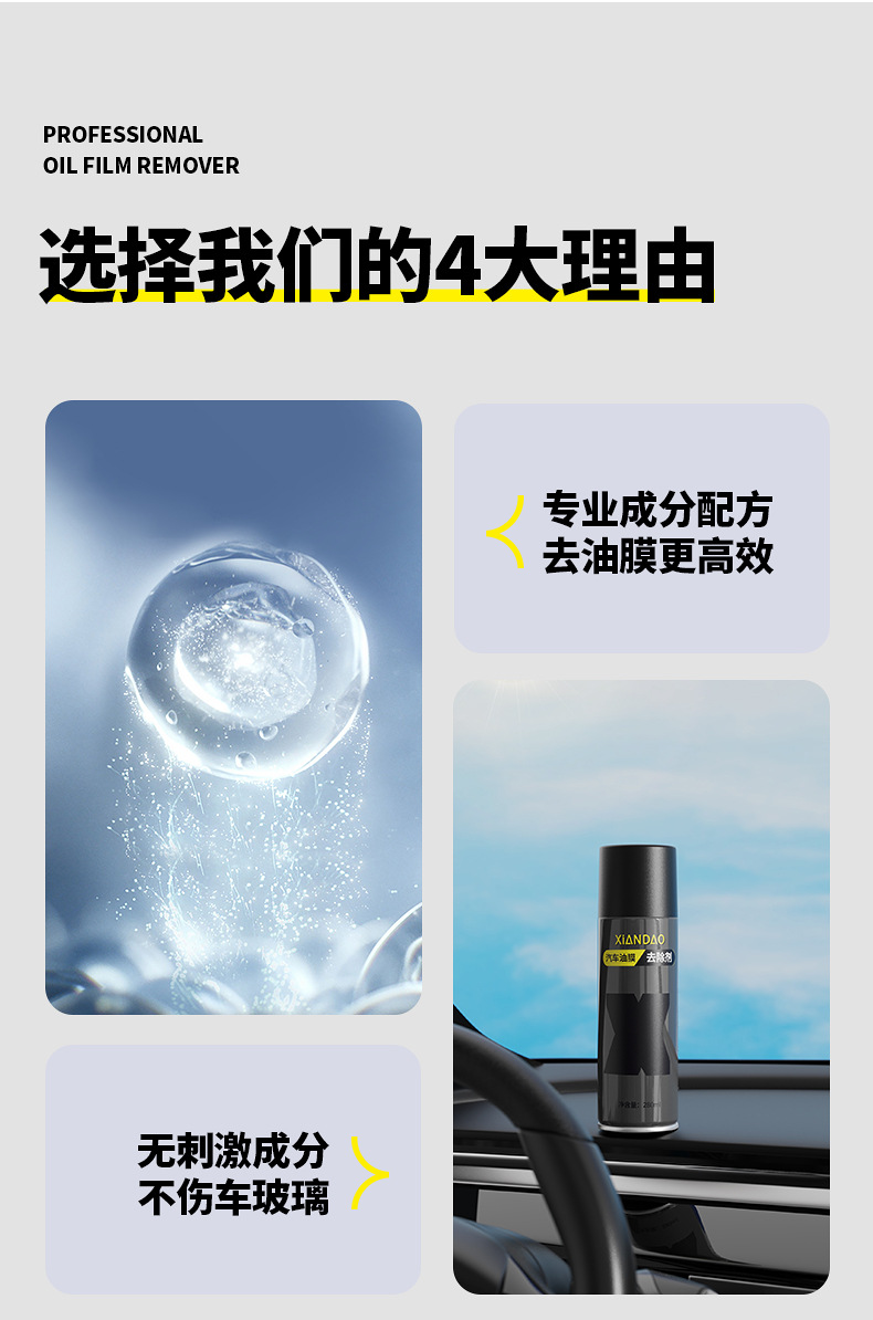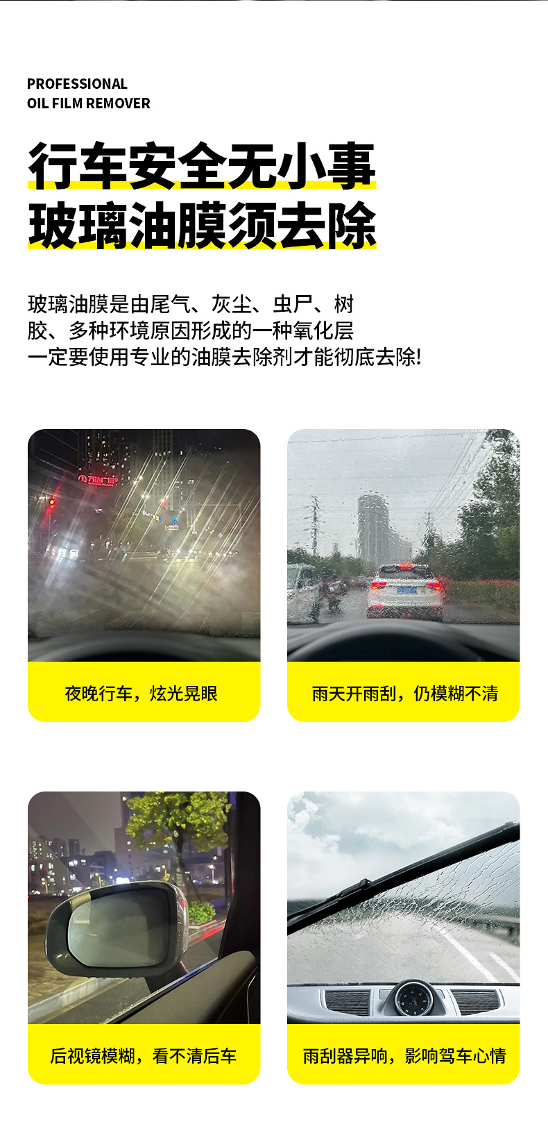 「买2送1!29.9到手3瓶,送海绵擦」油膜清洁剂 前挡风玻璃去除油膜净汽车专用玻璃油膜祛除剂瓶泡沫型养护