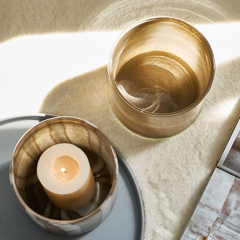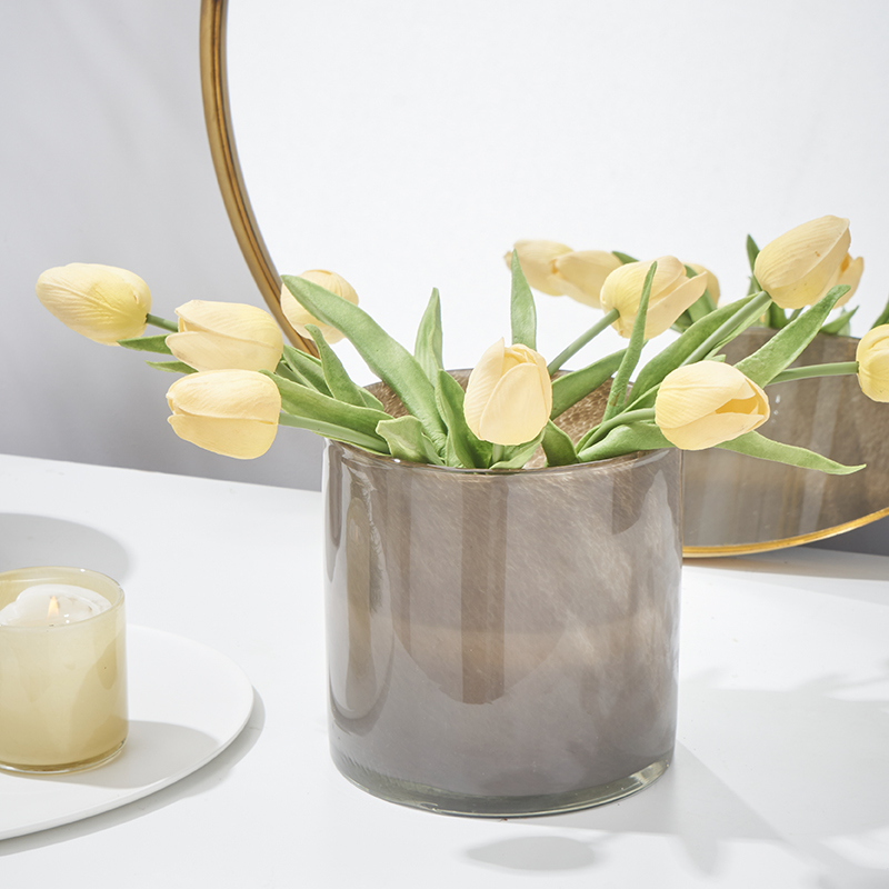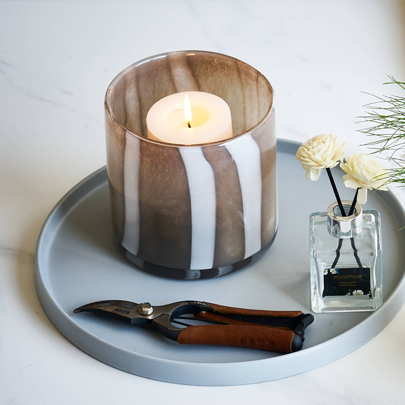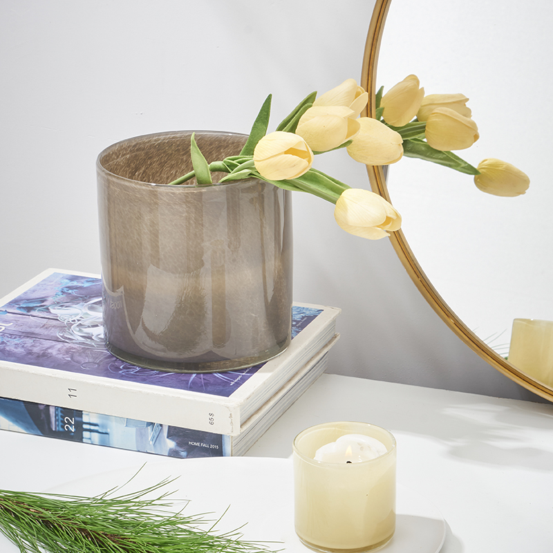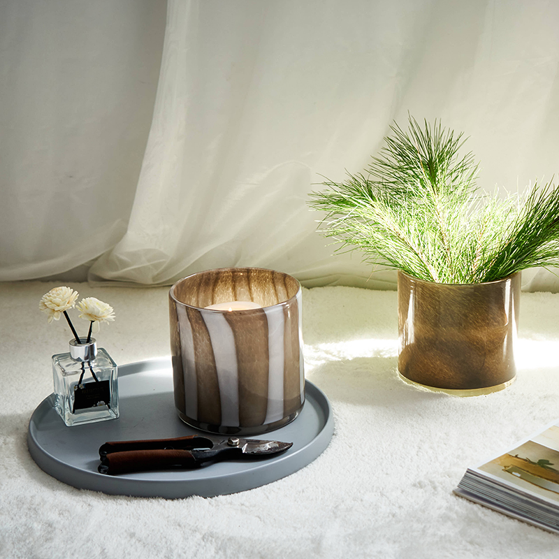 北欧简约渐变竖纹直筒蜡杯餐桌客厅软装家居水培郁金香玻璃杯花瓶