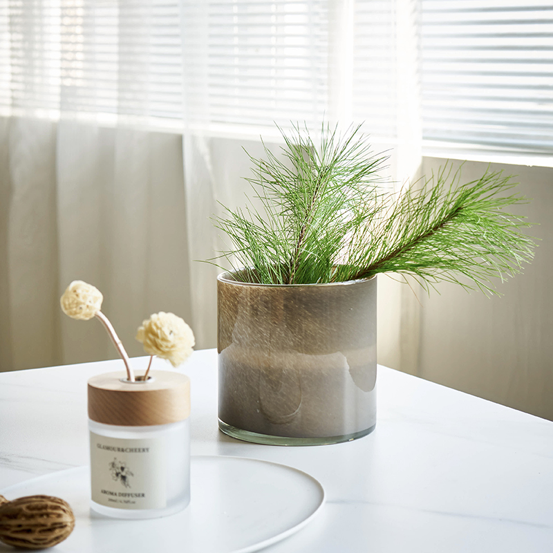 北欧简约渐变绿竖纹直筒花瓶餐桌客厅软装家居水培郁金香玻璃花瓶