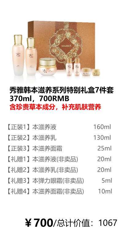 秀雅韩 本滋养系列特别礼盒7件套 370ml