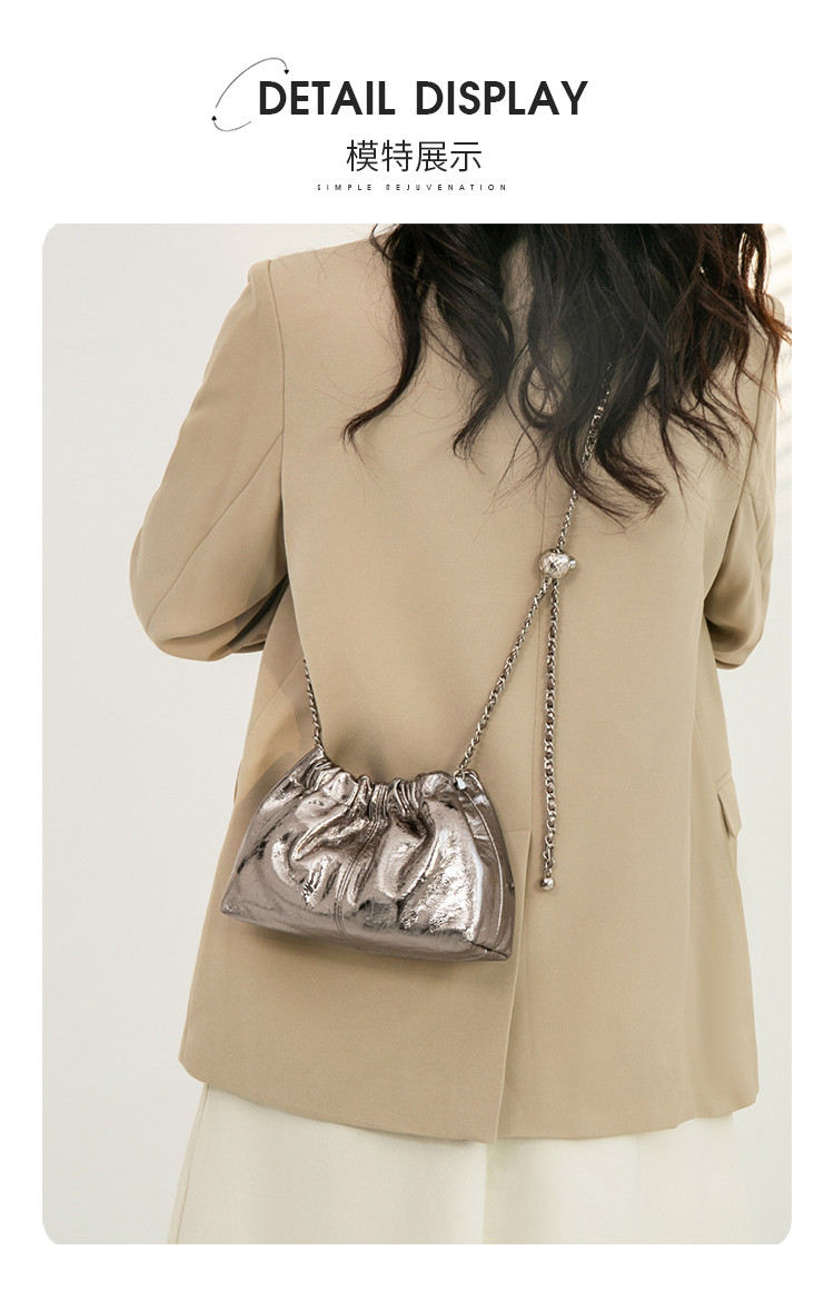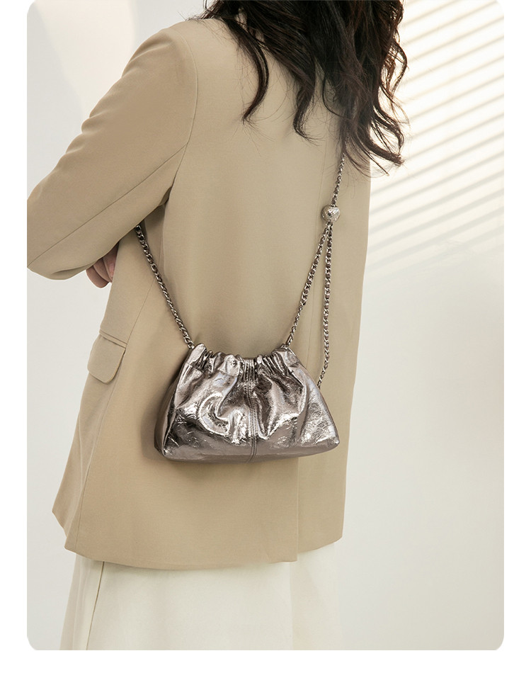 Safiya/索菲娅2024新款 头层牛皮爆款水桶包时尚链条单肩包斜挎女包 SF9136055Y