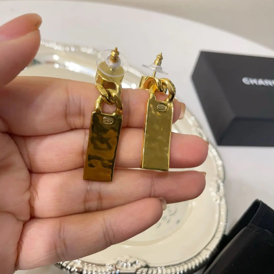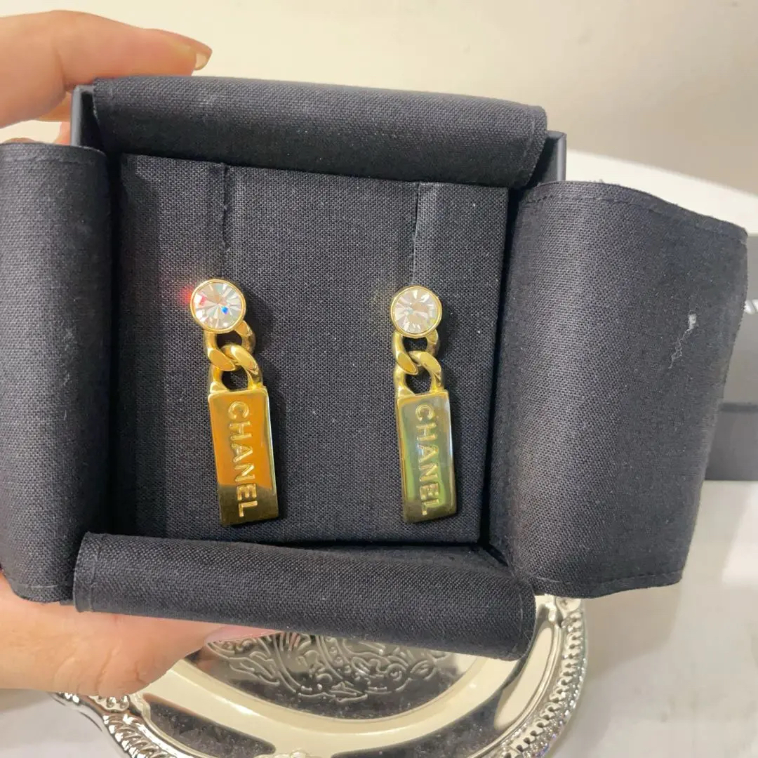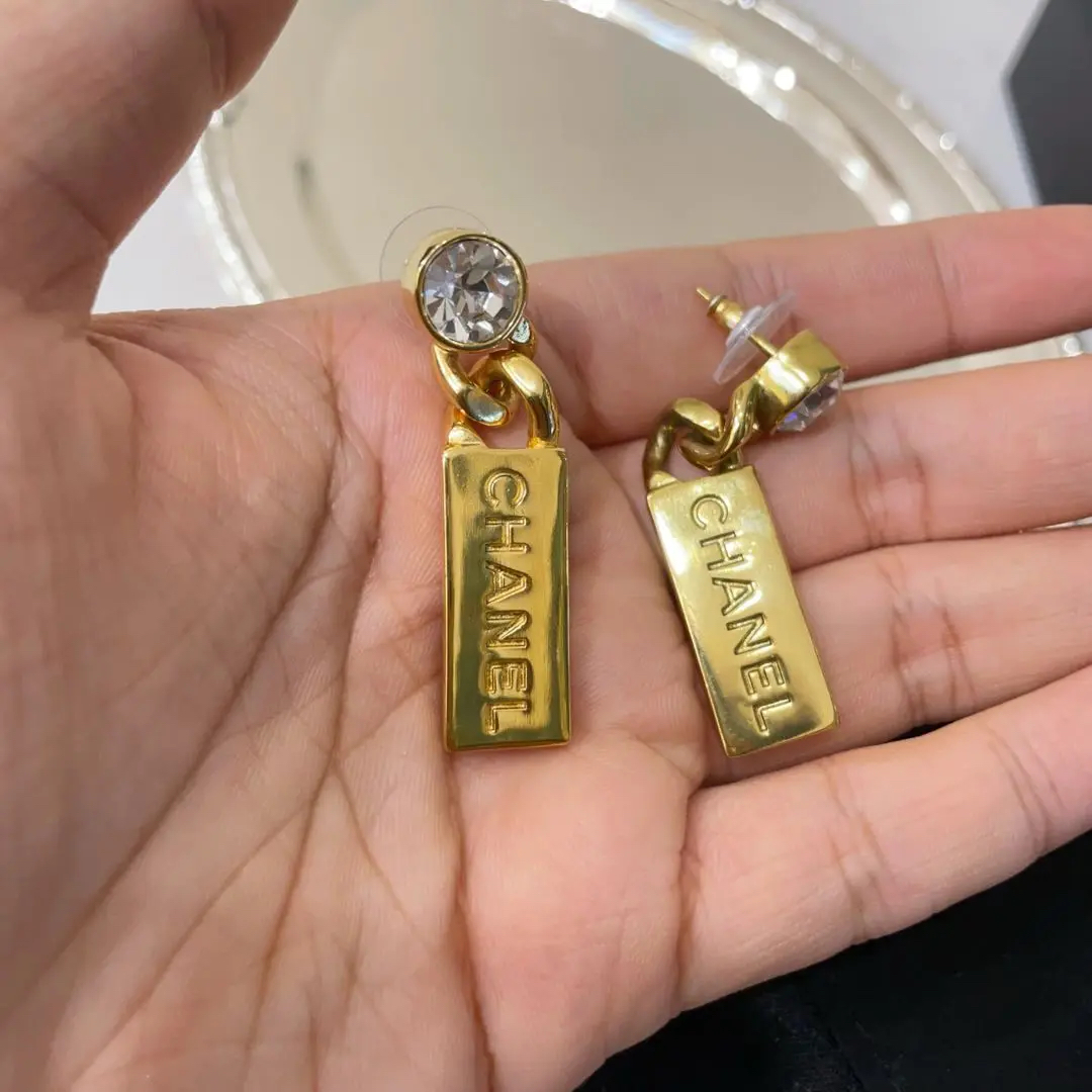 【商品详情】正品二手 Chanel 21c 字母LOGO 金色 钻石拼合金 耳环💖98新 5×1 配件:内袋 盒子。爆款金条耳饰 包装齐全成色新可送人!!