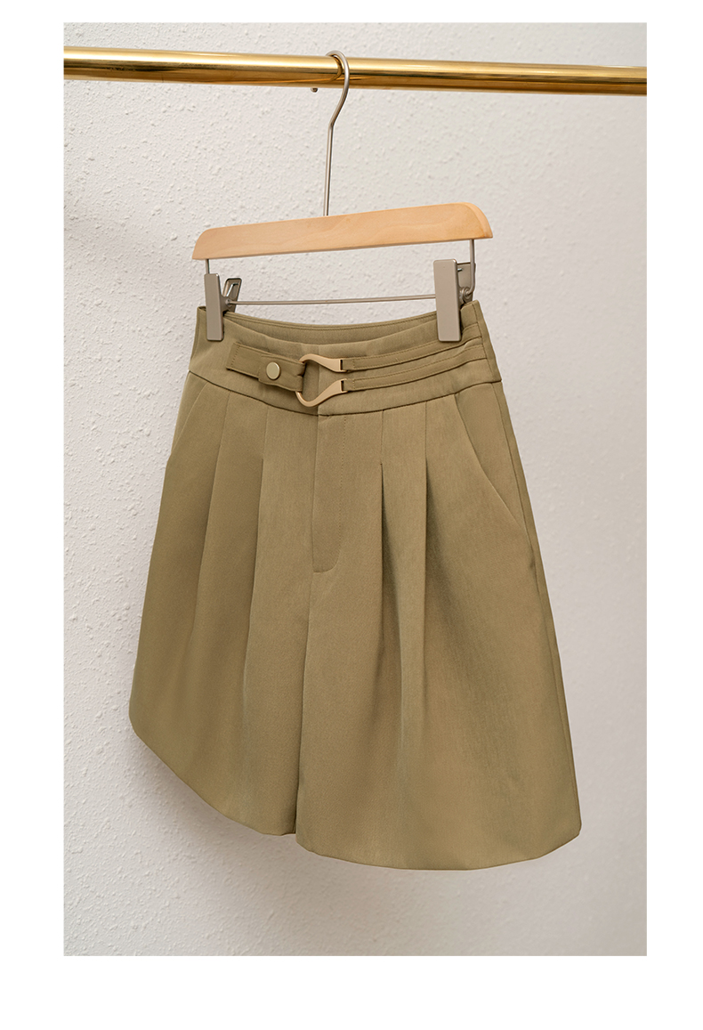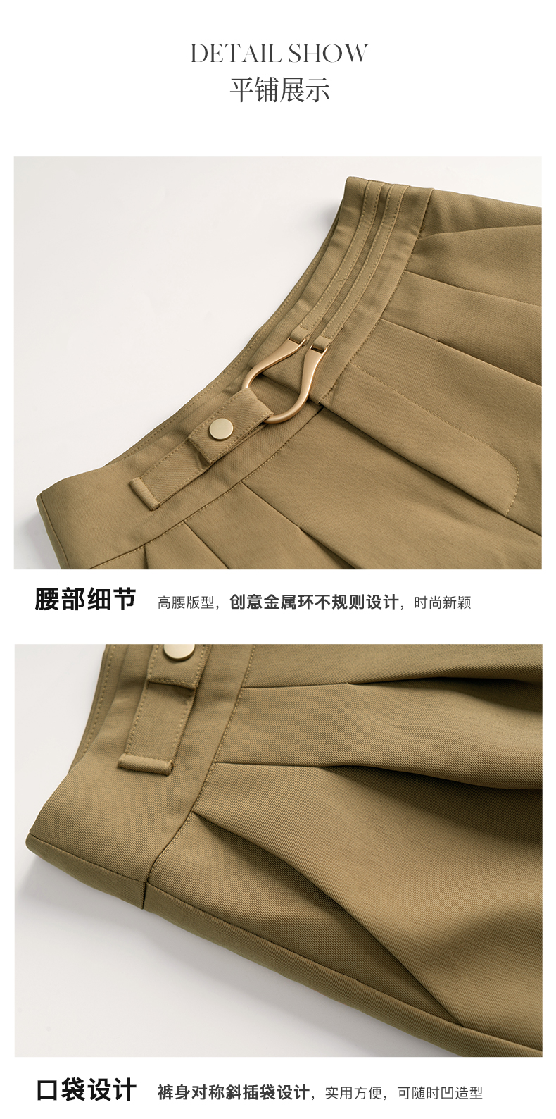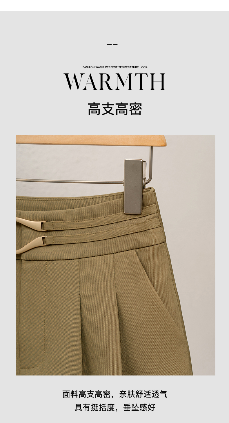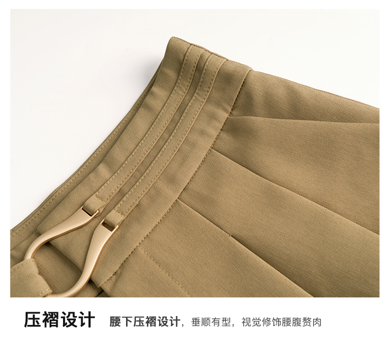 欧芮儿咖色休闲裤女春季2022新款高腰不规则直筒阔腿a字西装裤子