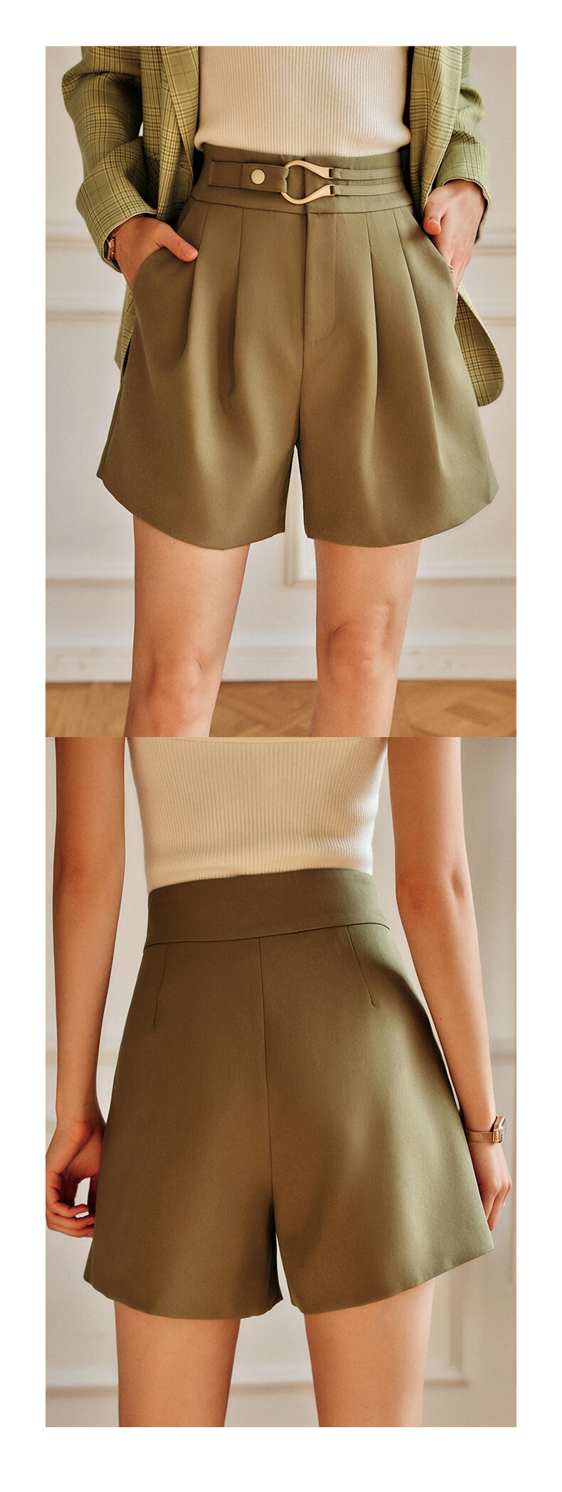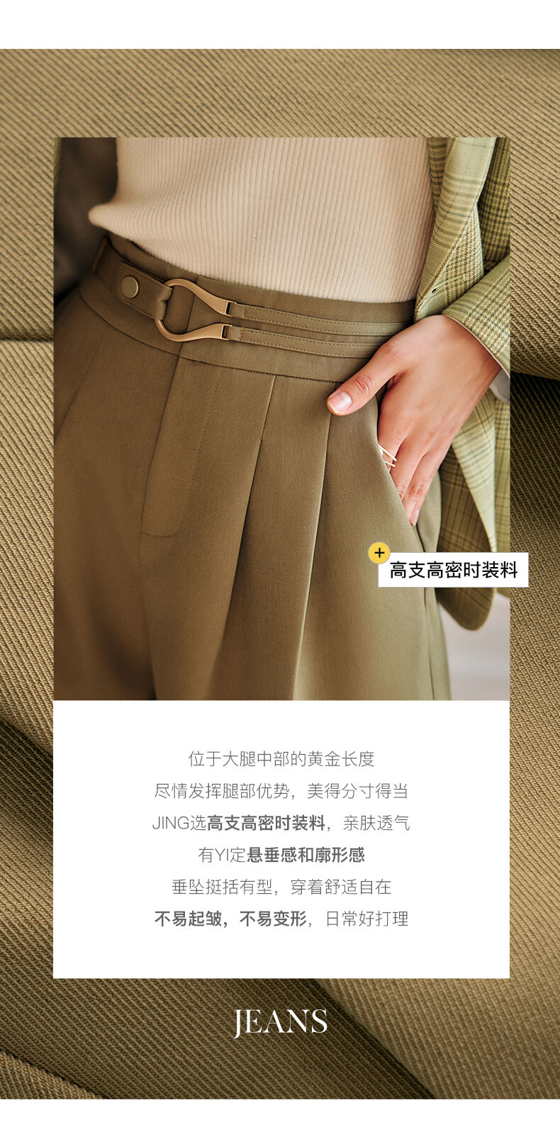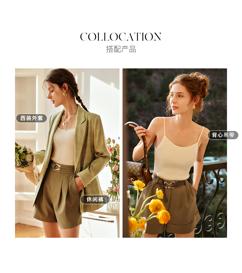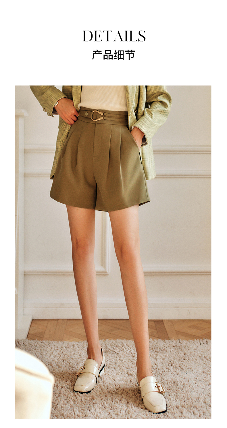 欧芮儿咖色休闲裤女春季2022新款高腰不规则直筒阔腿a字西装裤子